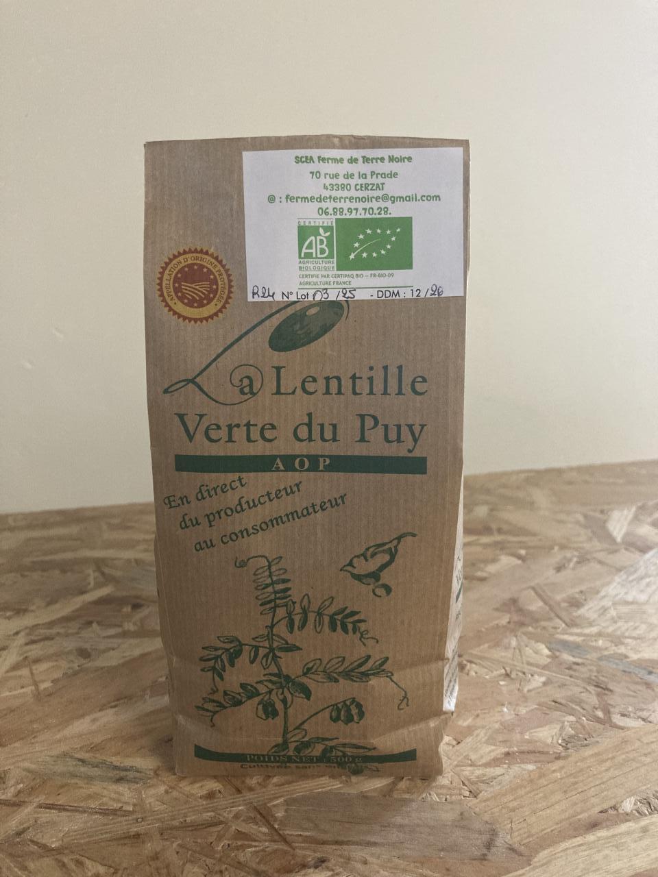 Lentille verte du Puy issue de la récolte de la ferme en AB