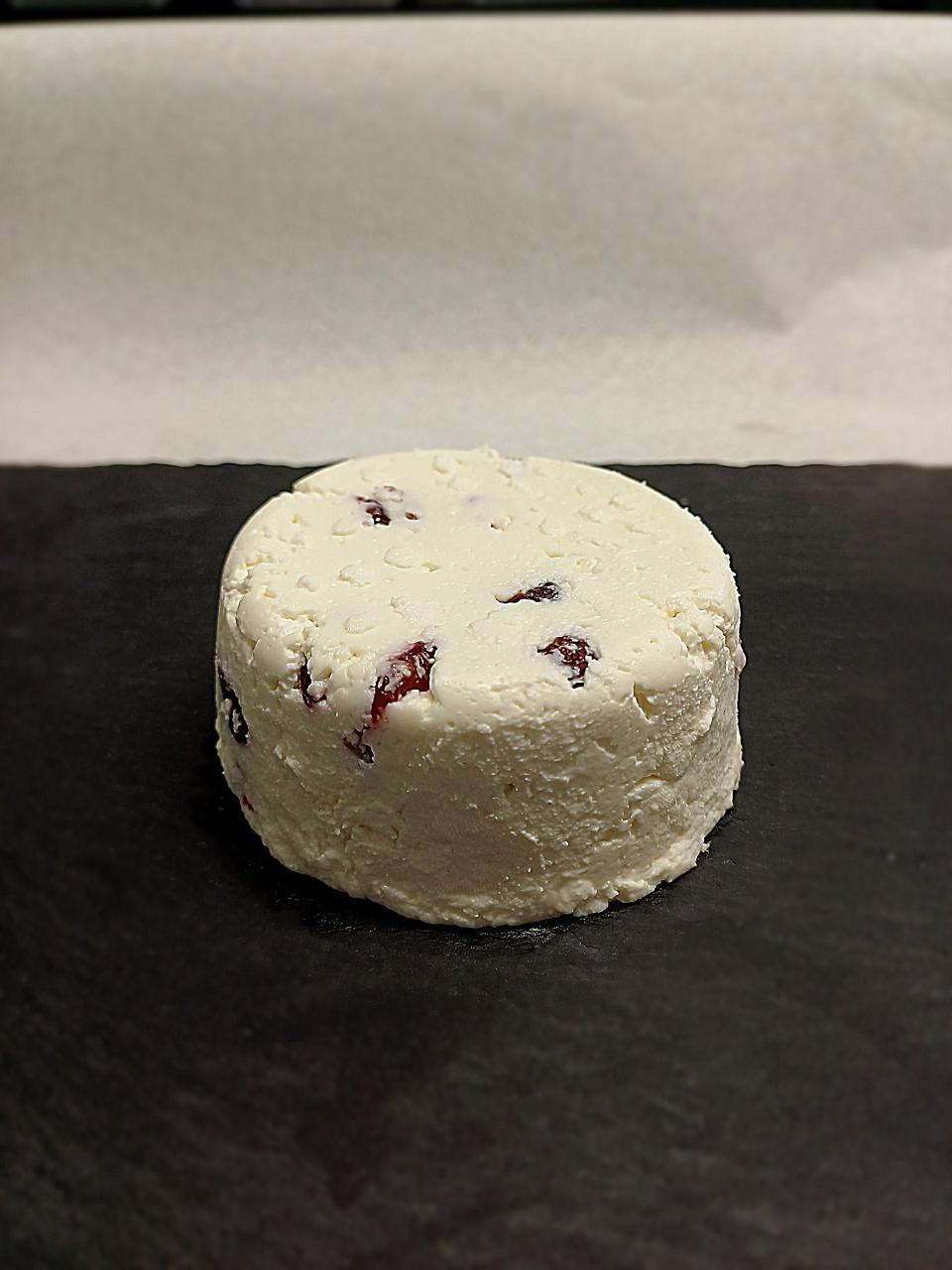 Ingrédients : Lait de chèvre entier, sel, cramberries séchées, ferments, présure