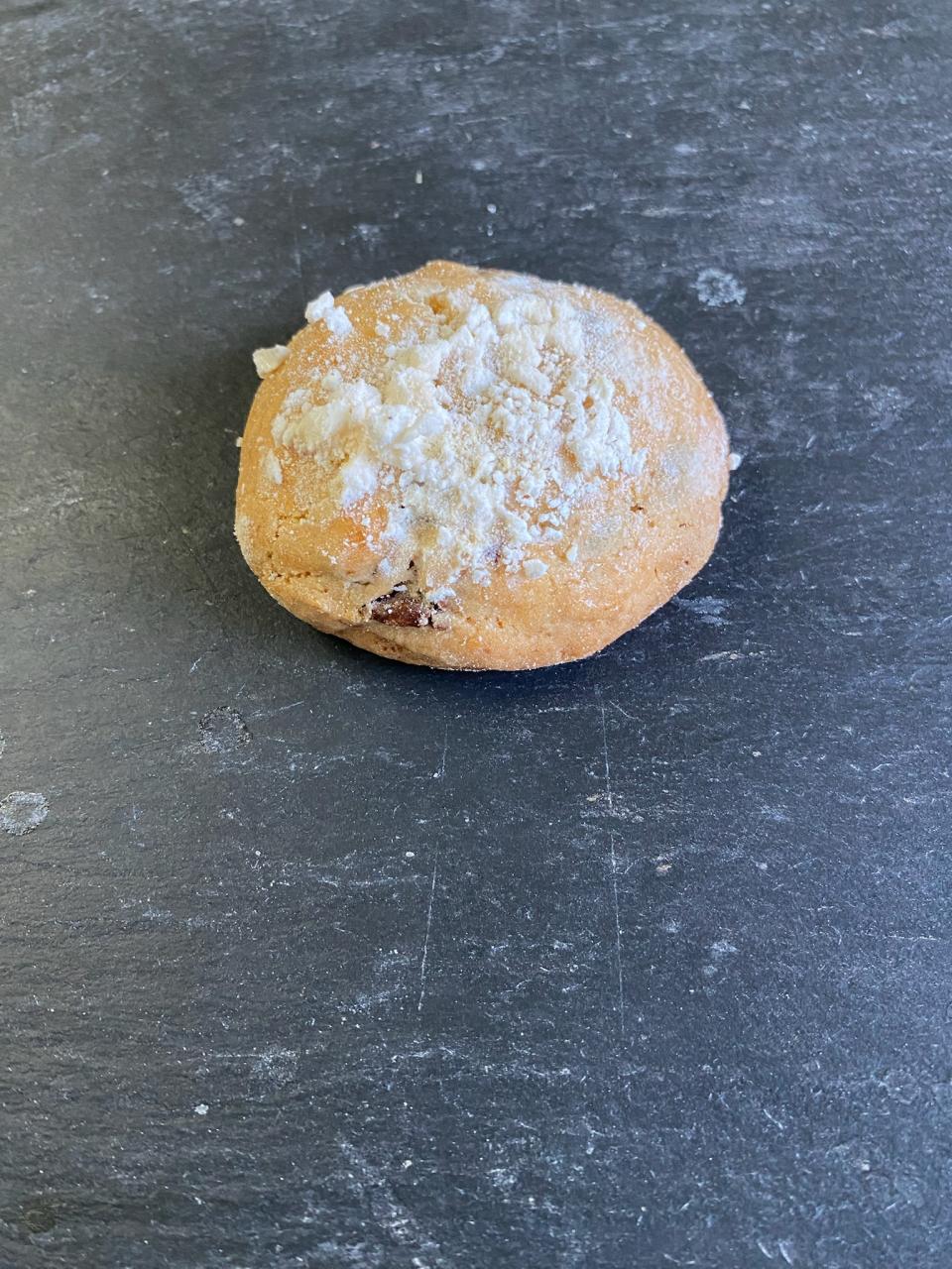 Pâte à cookie au zeste de citron et au pépites de chocolat lait parsemer de brisures de meringue