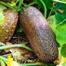 Fruit de 15 cm de long, brun foncé brodé, comme un vernis écaillé, à maturité. Concombre très original par sa couleur atypique, à la fois décoratif et bon (chair blanche sans amertume). Il se garde longtemps après récolte.
