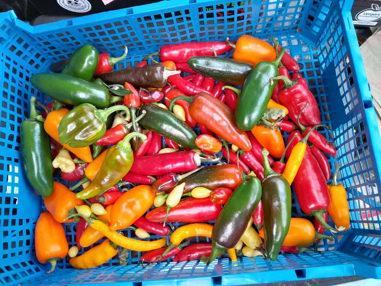 Conditionnement : vrac Durée de conservation : quelques jours ou des mois au congélateur Ingrédients : piments frais divers formes, couleurs et subtilité de goût Colorants ou arômes : aucun Origine : Saintigny, 28