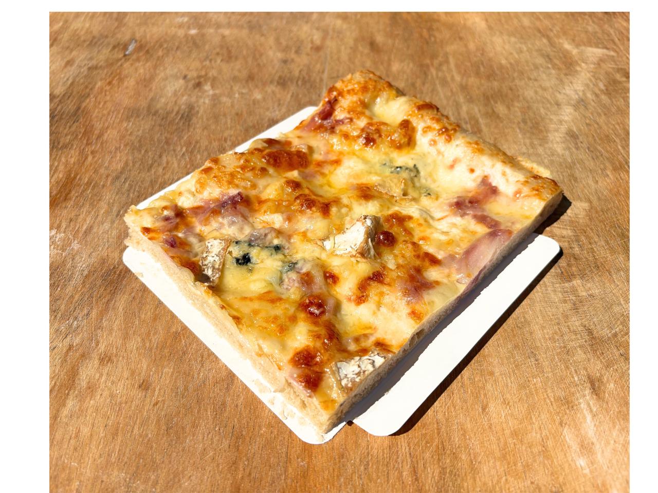 Garniture à Pizza : Sauce tomate, Pesto basilique, Tomates séchées, Poivrons à l'huile et gratinée à la Mozzarella