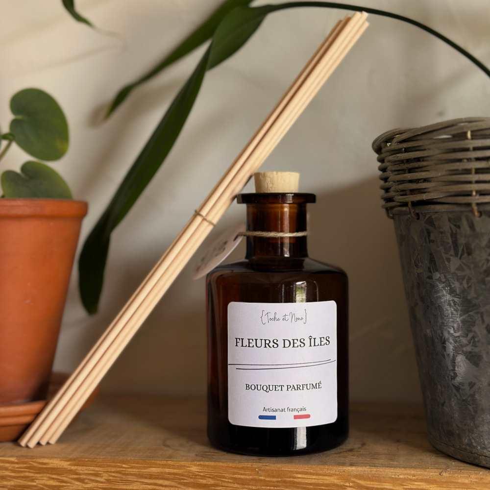Invitez l’exotisme et la douceur des tropiques dans votre maison avec notre bouquet parfumé Fleurs des Îles. Après les bougies et fondants parfumés, la maison Toche & Nono vous propose un diffuseur élégant et naturel pour parfumer votre intérieur de manière constante et sans effort.