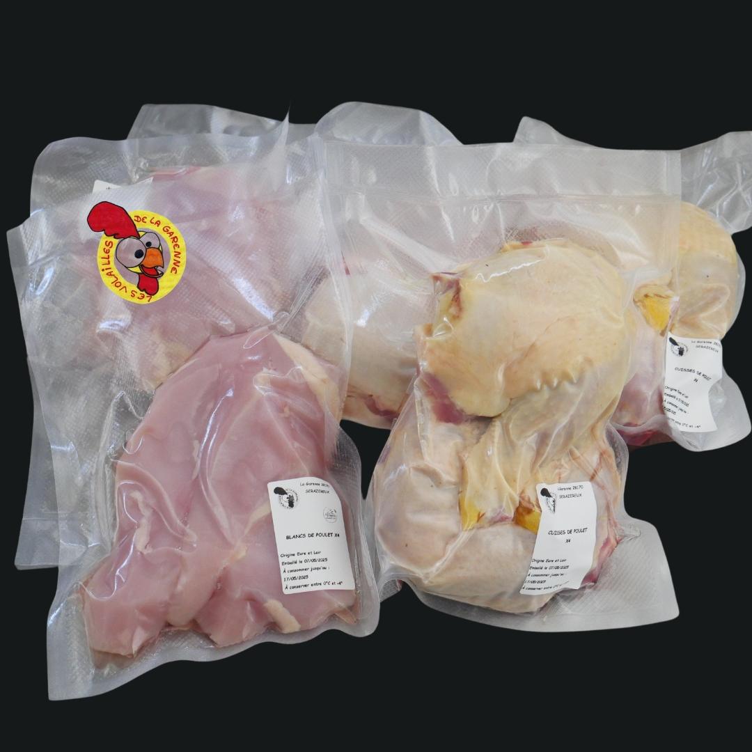 - 3 kg de cuisses de poulet (environ 12 cuisses), parfaites pour mijotés, grillades ou barbecues