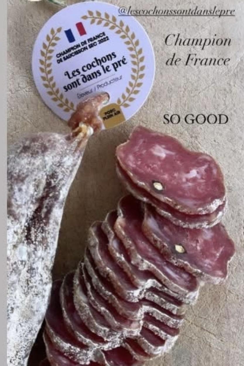 Saucisson sec nature Porc de Bayeux de 250 à 280 grammes selon affinage.