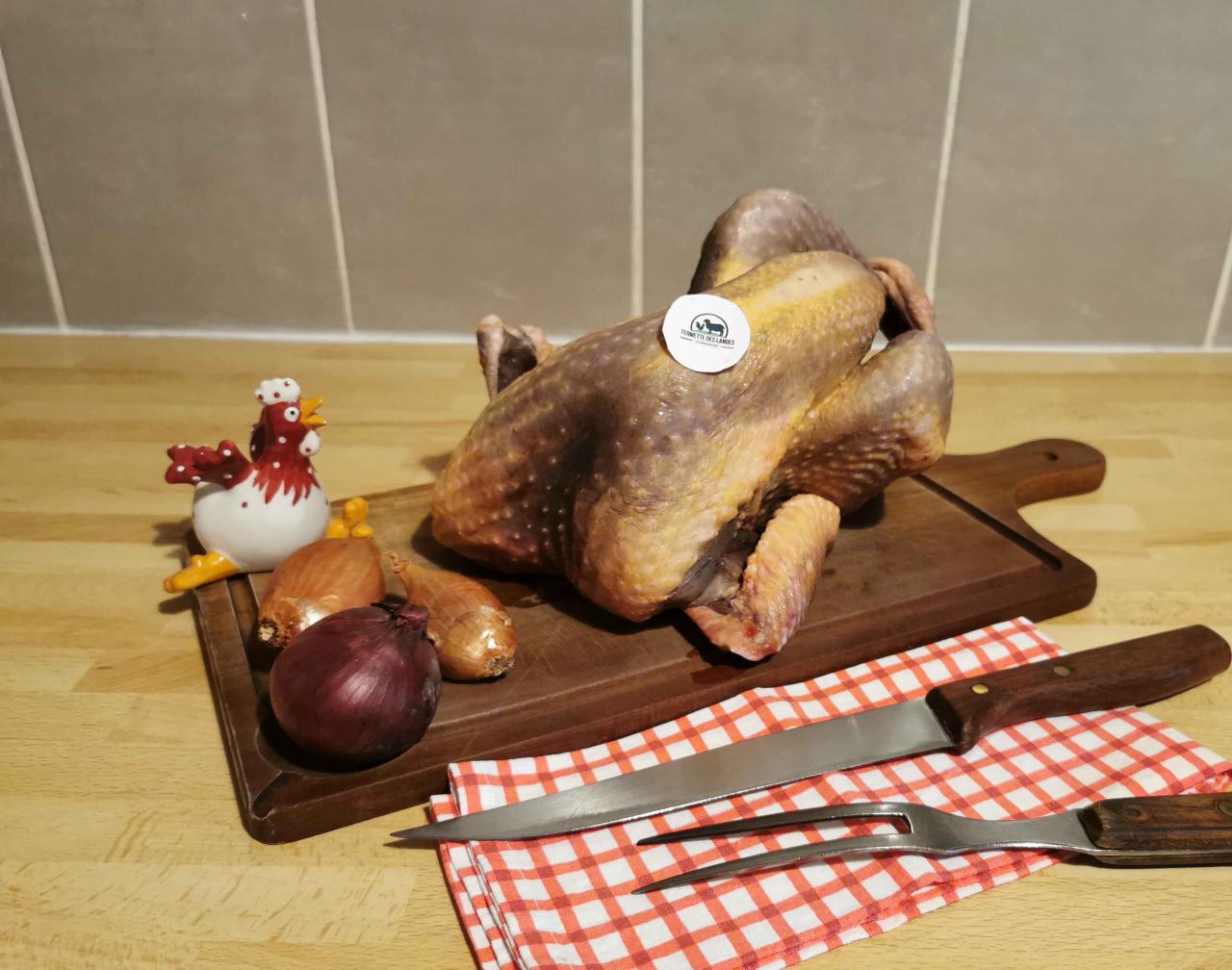 Pintade Fermière prêt à cuire élevés en plein air et nourris aux céréales locales.