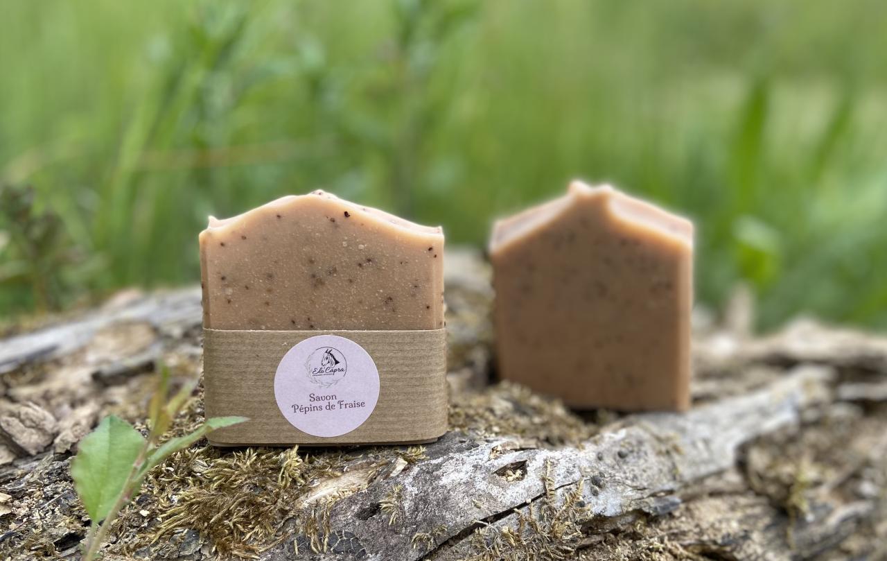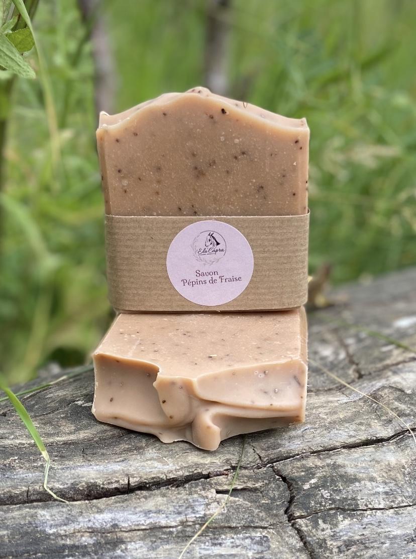 ✨ Savon Exfoliant au Lait de Chèvre, Argile Rose & Pépins de Fraise ✨