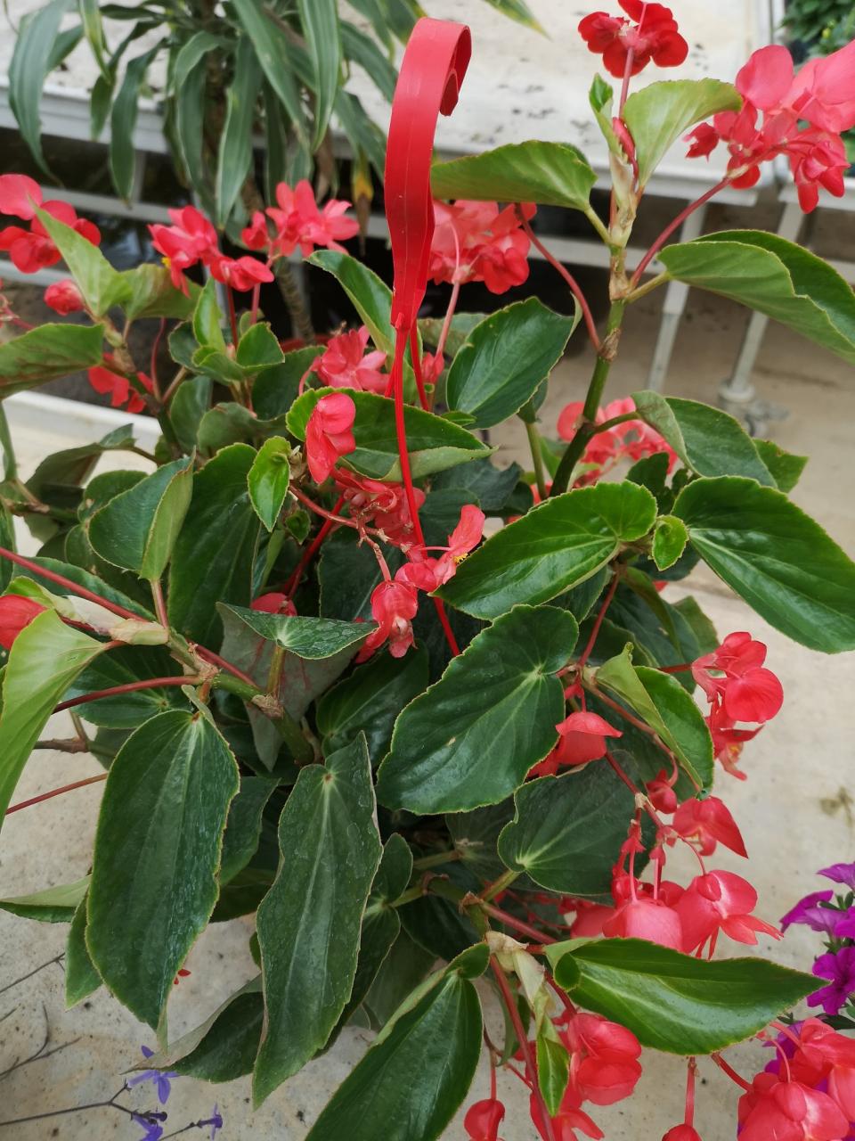 Suspension de Bégonia dragon à feuillage vert et fleurs rouge de diamètre 27cm de couleurs rouge. Très résistant au soleil et très florifère.