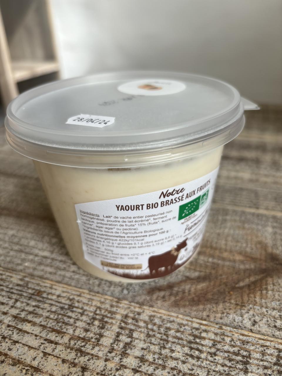 Yaourt nature brassé à l'abricot présenté en pot de 500g (format familial).