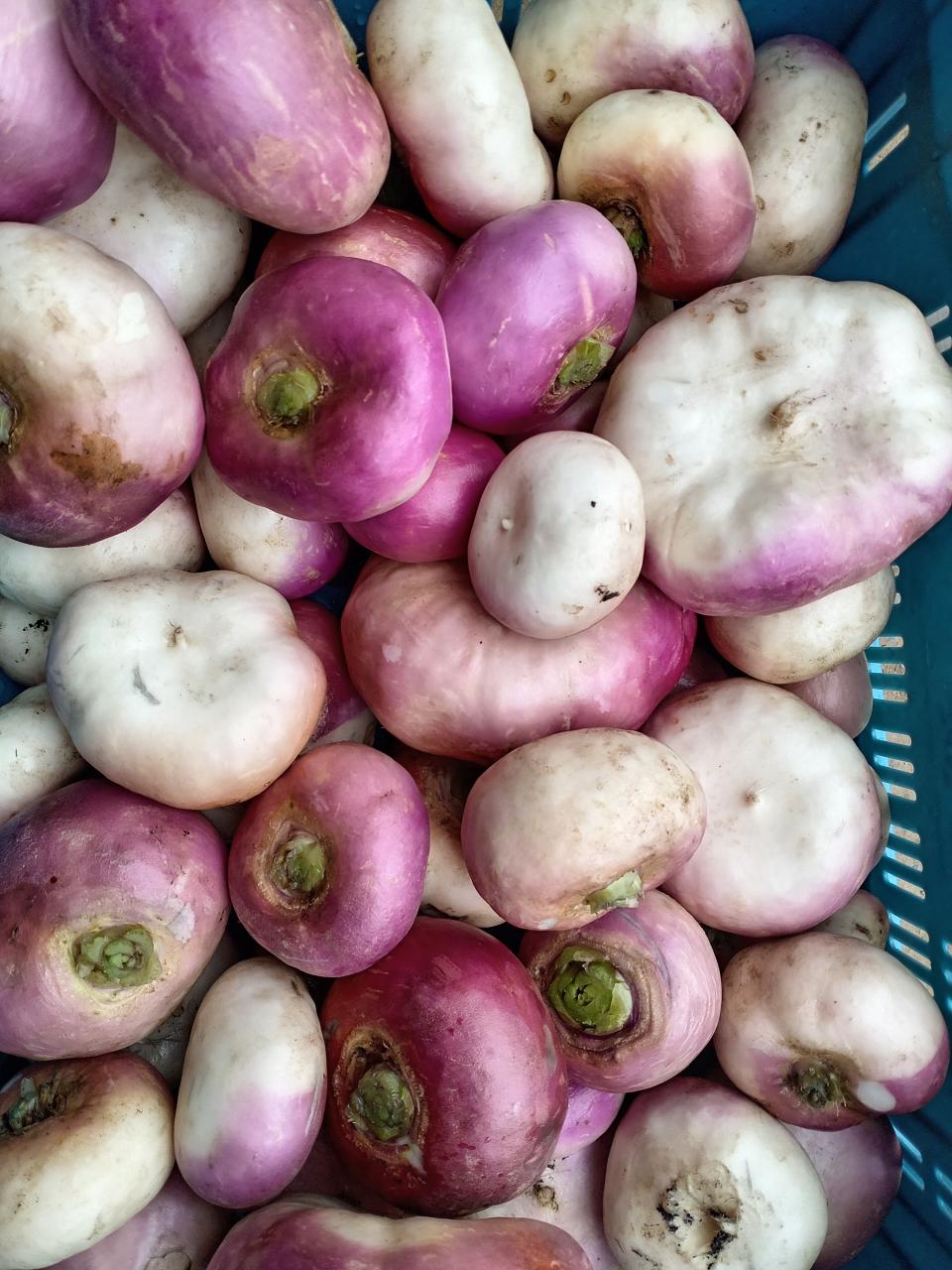Navet plat en vrac peut être consommé cru ou cuit selon les goûts et les envies. Saveur douce légèrement piquante qui peut devenir plus douce et plus sucrée lorsqu'il est cuit, en particulier lorsqu'il est rôti.