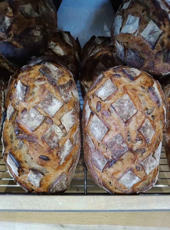 Composition: farine blé variété ancienne T65 rouge de Bordeaux, graines de courges, levain naturel, sel, eau