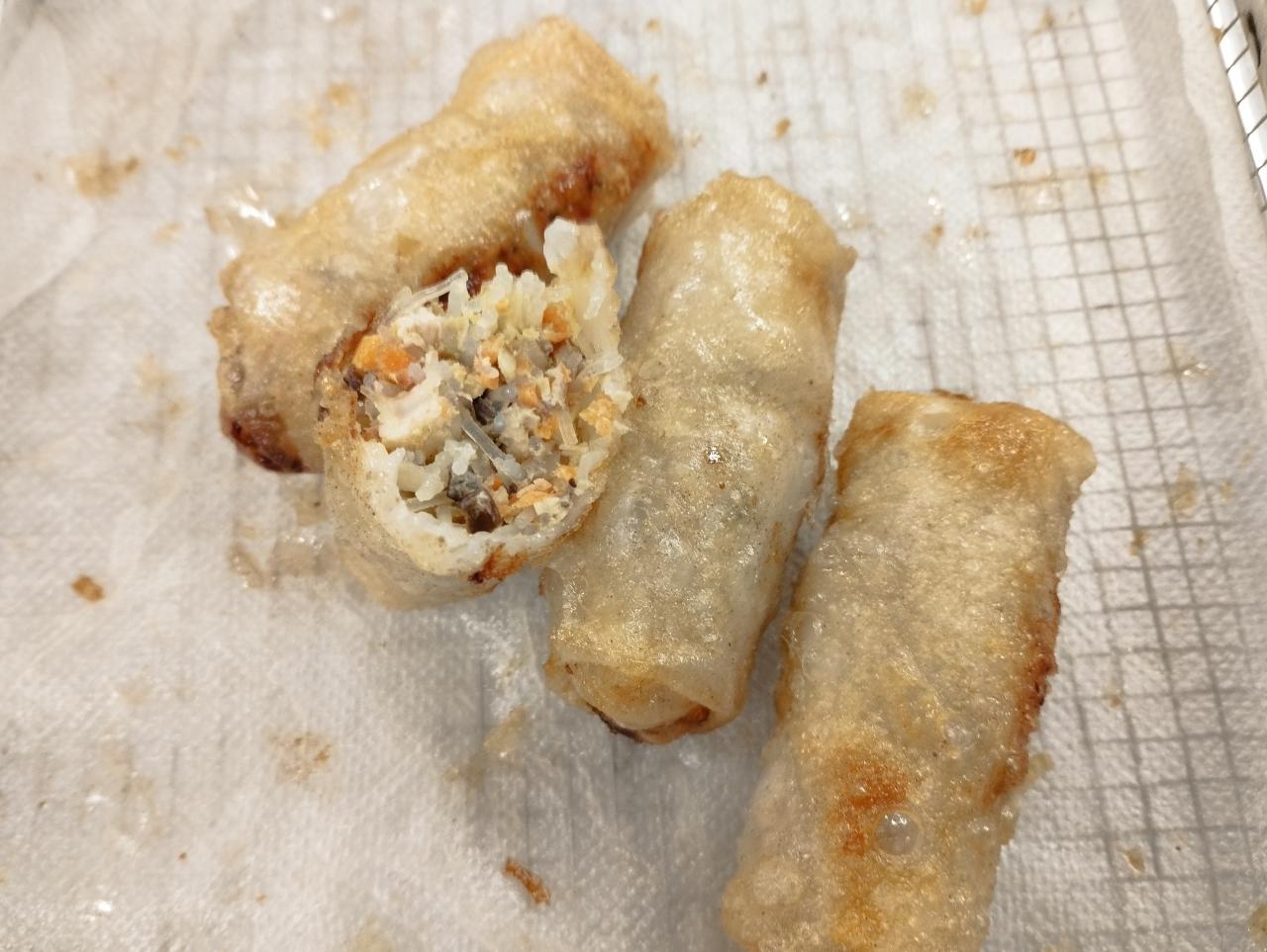 Ingrédients : Poulet, vermicelles de soja, carottes, champignons noirs, oignons, échalotte, nuoc-mâm, sel, poivre, oeuf, galette de riz. Sans gluten