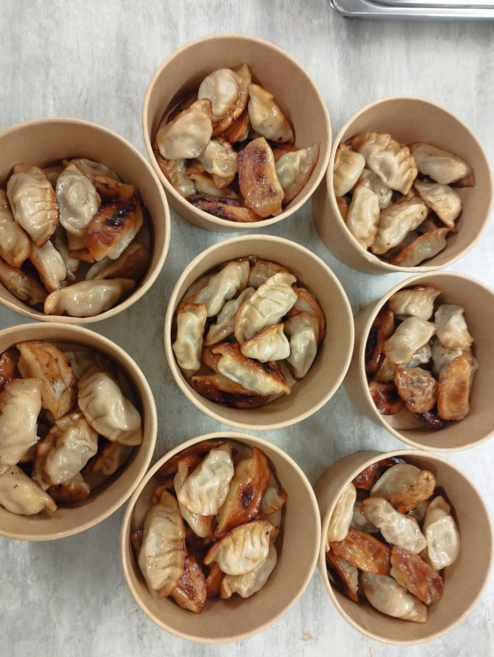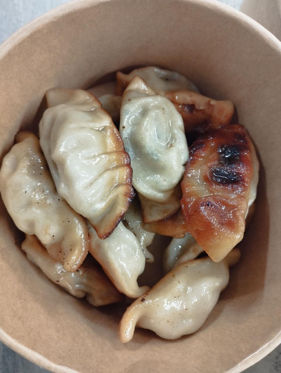 Ravioli Japonais fait avec de la farine de blé à l'ancienne, farci de poulet et légumes de saison. A réchauffer au micro ondes 1mn10 ou à la vapeur, et à servir avec la sauce pour gyoza. Quantité pour 2 personnes.