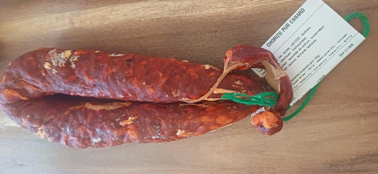 Un chorizo de caractère, entièrement au canard. Idéal pour relever vos salades, garnir vos pizzas ou se déguster chaud