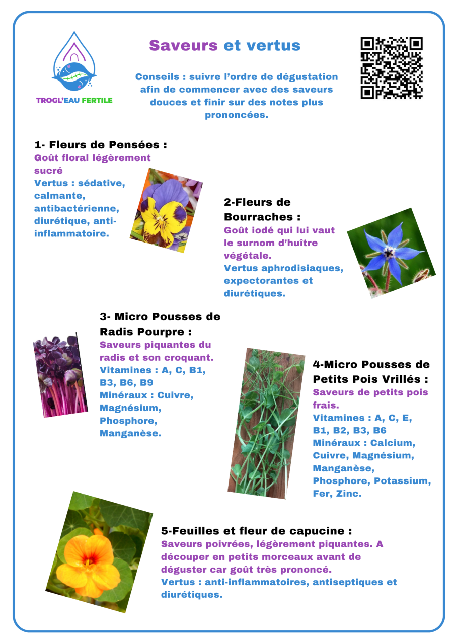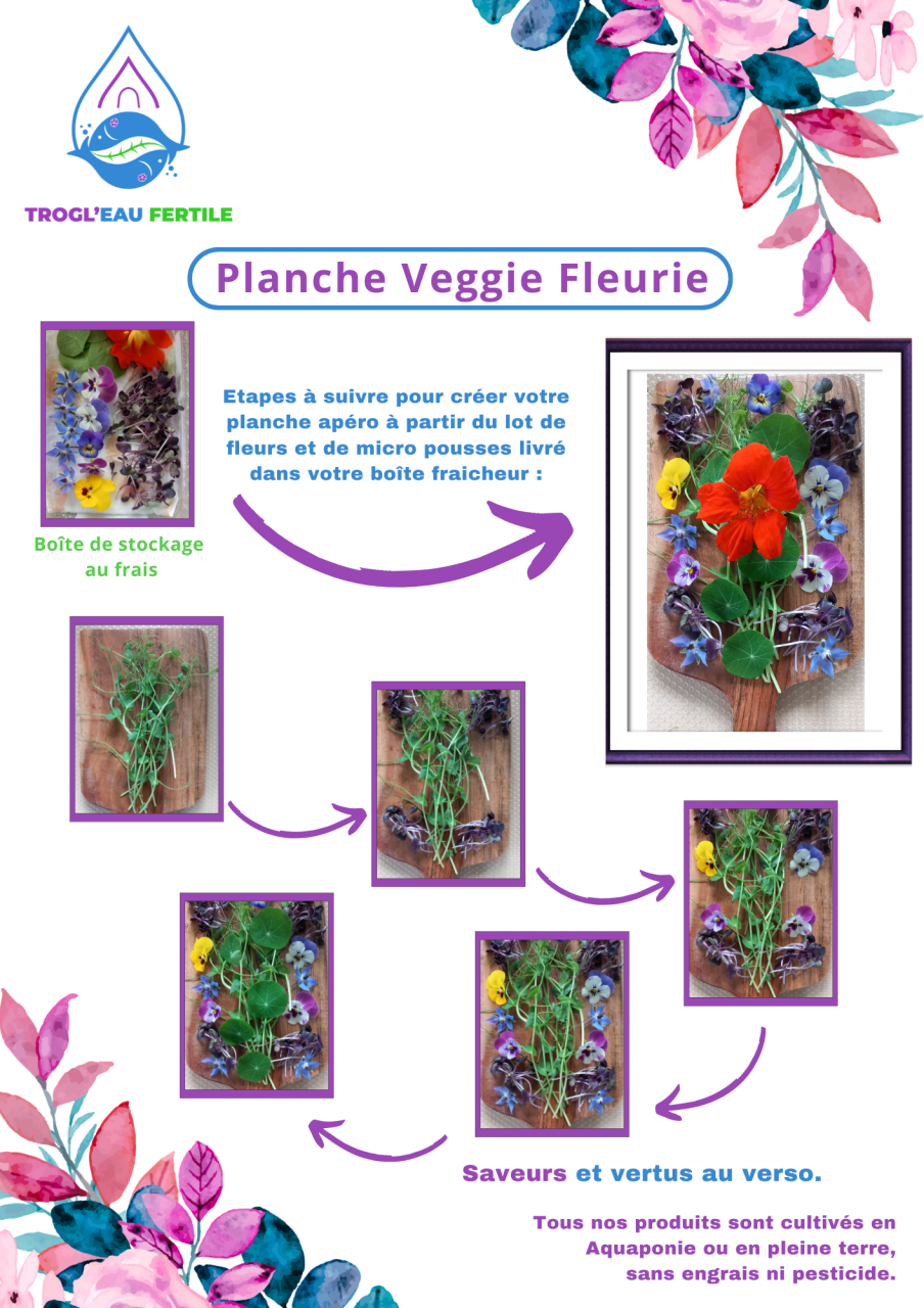 En plus du pas à pas qui va vous aider à dresser votre planche Veggie Fleurie, vous trouverez au verso de la fiche les différentes saveurs et vertus de chaque élément ainsi qu'un ordre conseillé de dégustation.