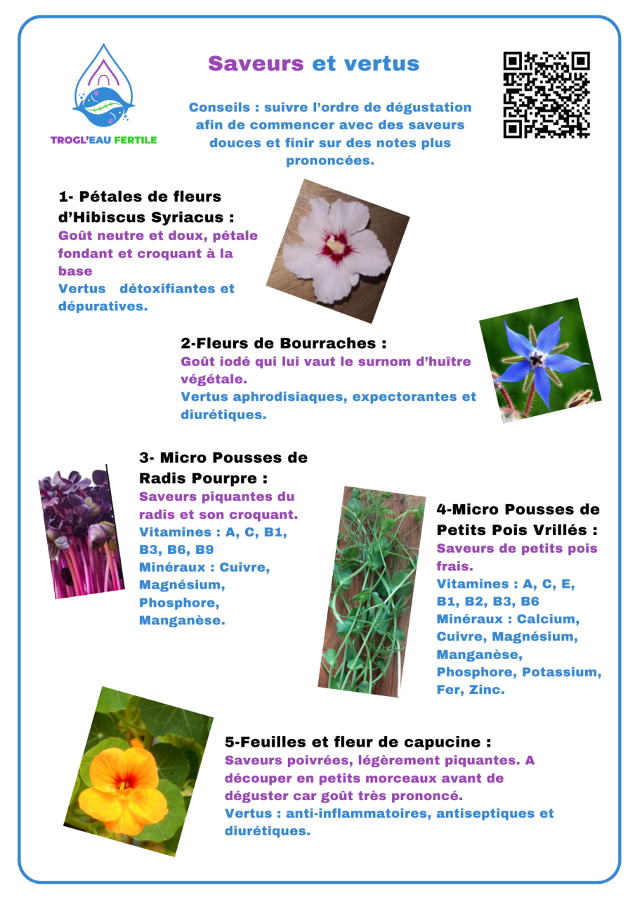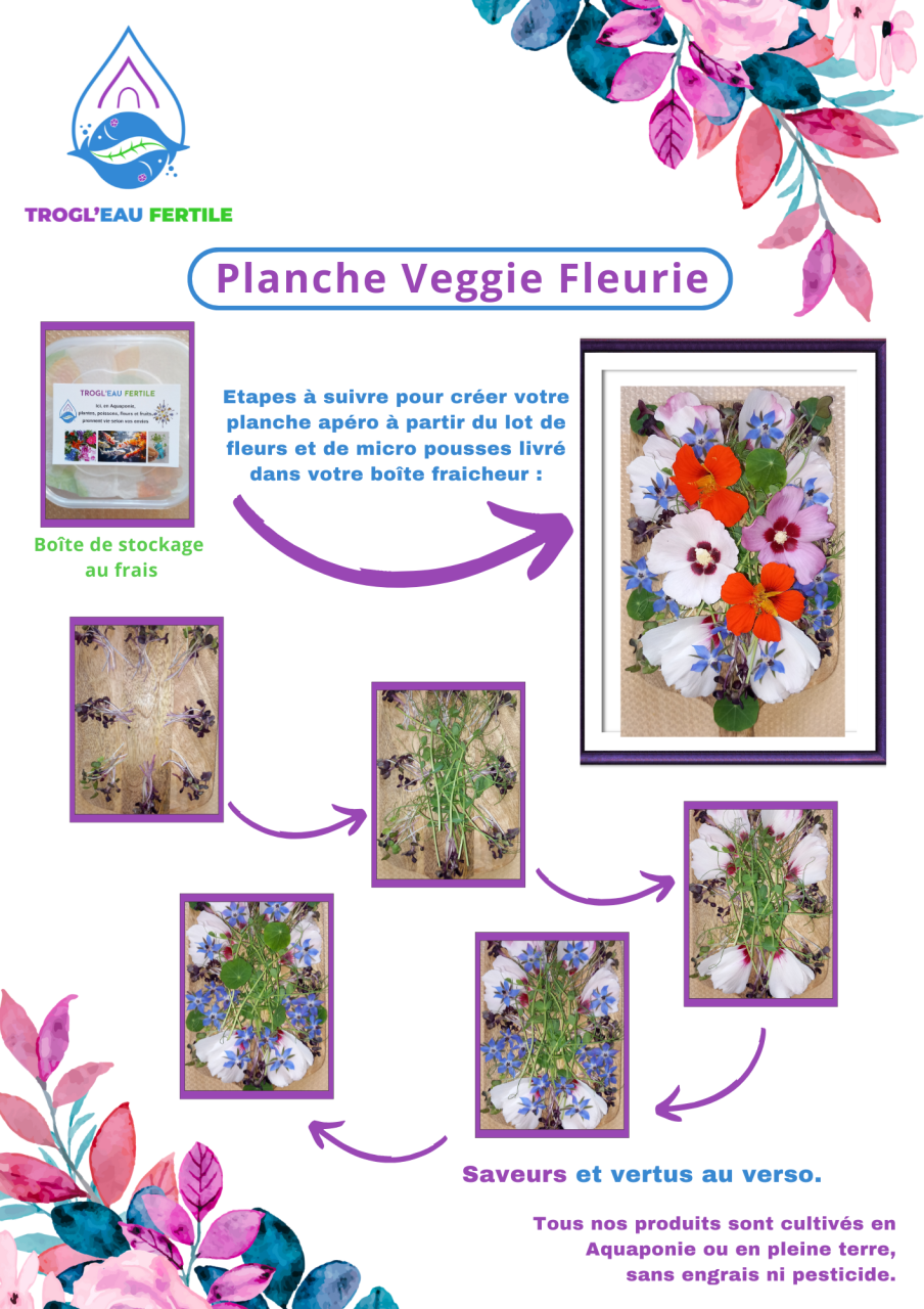 En plus du pas à pas qui va vous aider à dresser votre planche Veggie Fleurie, vous trouverez au verso de la fiche les différentes saveurs et vertus de chaque élément ainsi qu'un ordre conseillé de dégustation.