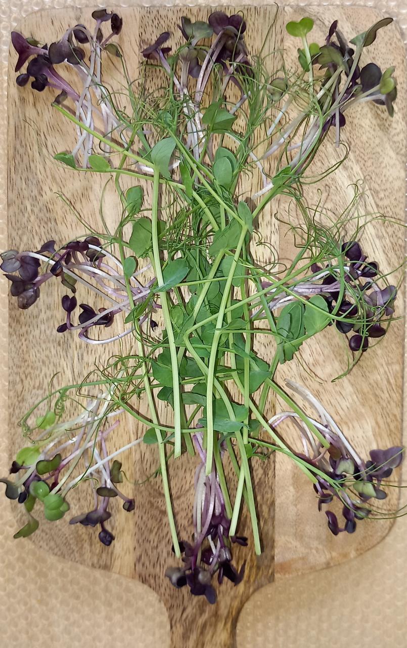 Votre kit contient une planche, une fiche et une boîte fraicheur avec les micro pousses et les fleurs à conserver au réfrigérateur.
