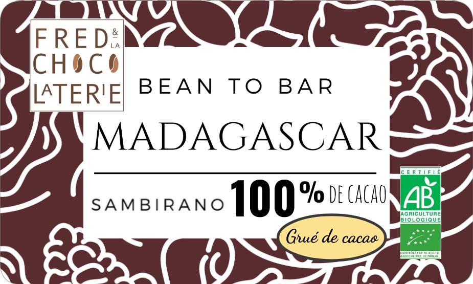 Ingrédients : Fèves de cacao du Madagascar (Sambirano) et rien d'autre!!! pas d'émulsifiant pour la texture ou de la vanille pour cacher les défauts d'une matière première de mauvaise qualité!!