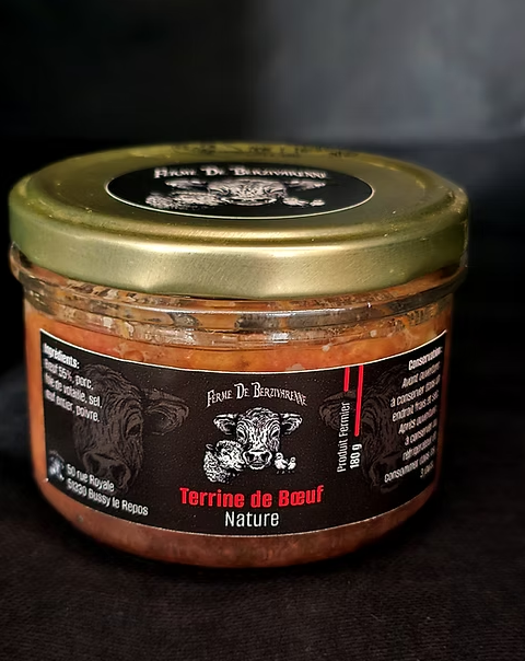 Savourez la simplicité d'une terrine 55% de bœuf, préparé à partir de la viande de notre élevage.