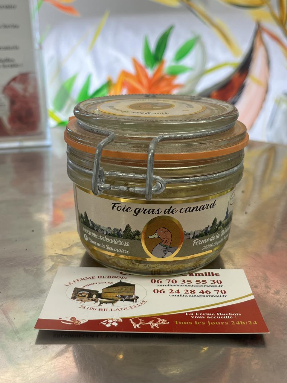 Une terrine de Foie Gras de canard cuit de110 gr en provenance de LA FERME DE LA BELVINDIERE , partenaire de la FERME DURBOIS pour la distribution de produits locaux. Un régal pour partager un moment d'exception à l'apéro , ou une belle entrée pour démarrer un repas festif Conditionné en 110 gr dans un bocal en verreTerrine de boudin noir , issu de notre élevage de porcs fermiers plein air à LA FERME DURBOIS ( 28). Conditionné en 180 gr dans un bocal en verre