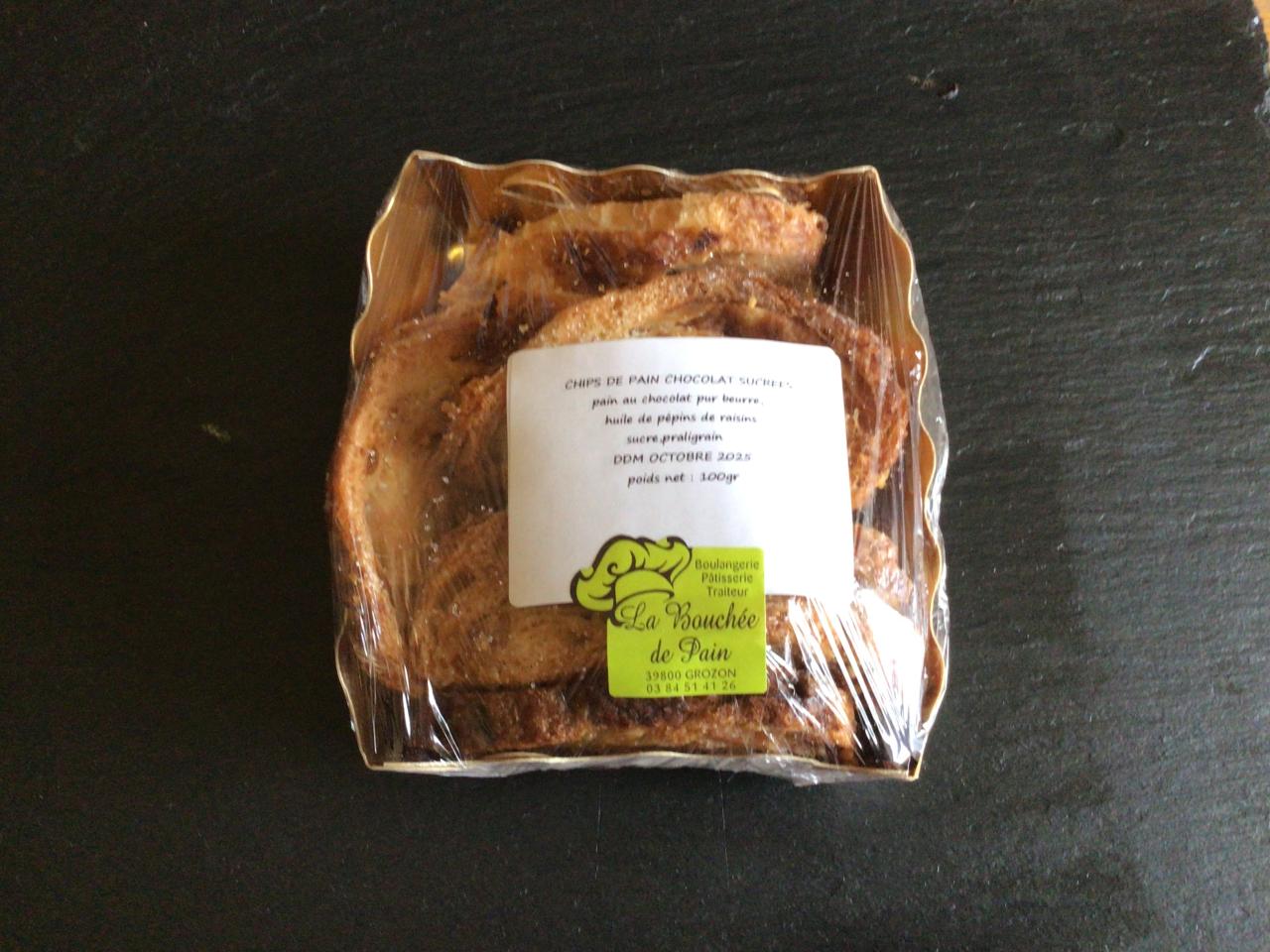 Produits antigaspi, réalisée avec des pain au chocolat de la veille. Ces sont des tranches de pain au chocolat agrémentée d’huile de pépin de raisin ,de sucre et praligrain. Idéal pour le goûter ou pour accompagner le café