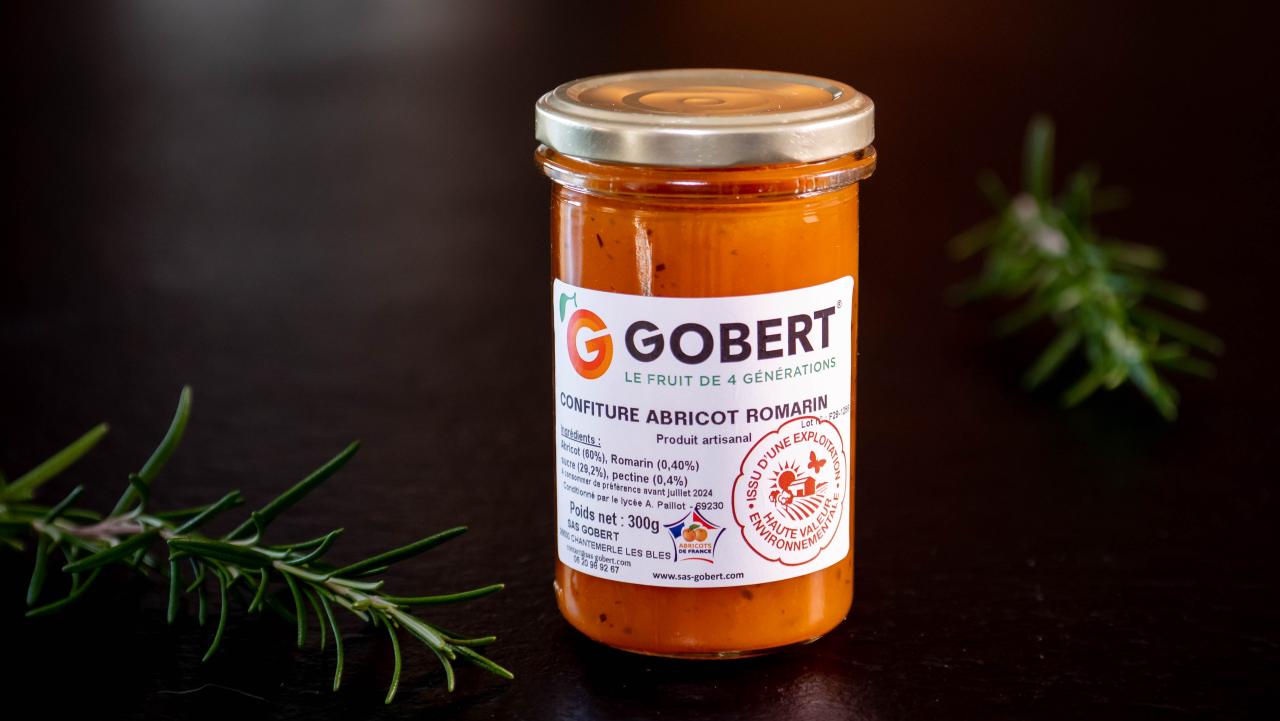 Confiture réalisée avec les abricots de l'exploitation familiale Gobert située à Chantemerle-les-Blés (26).