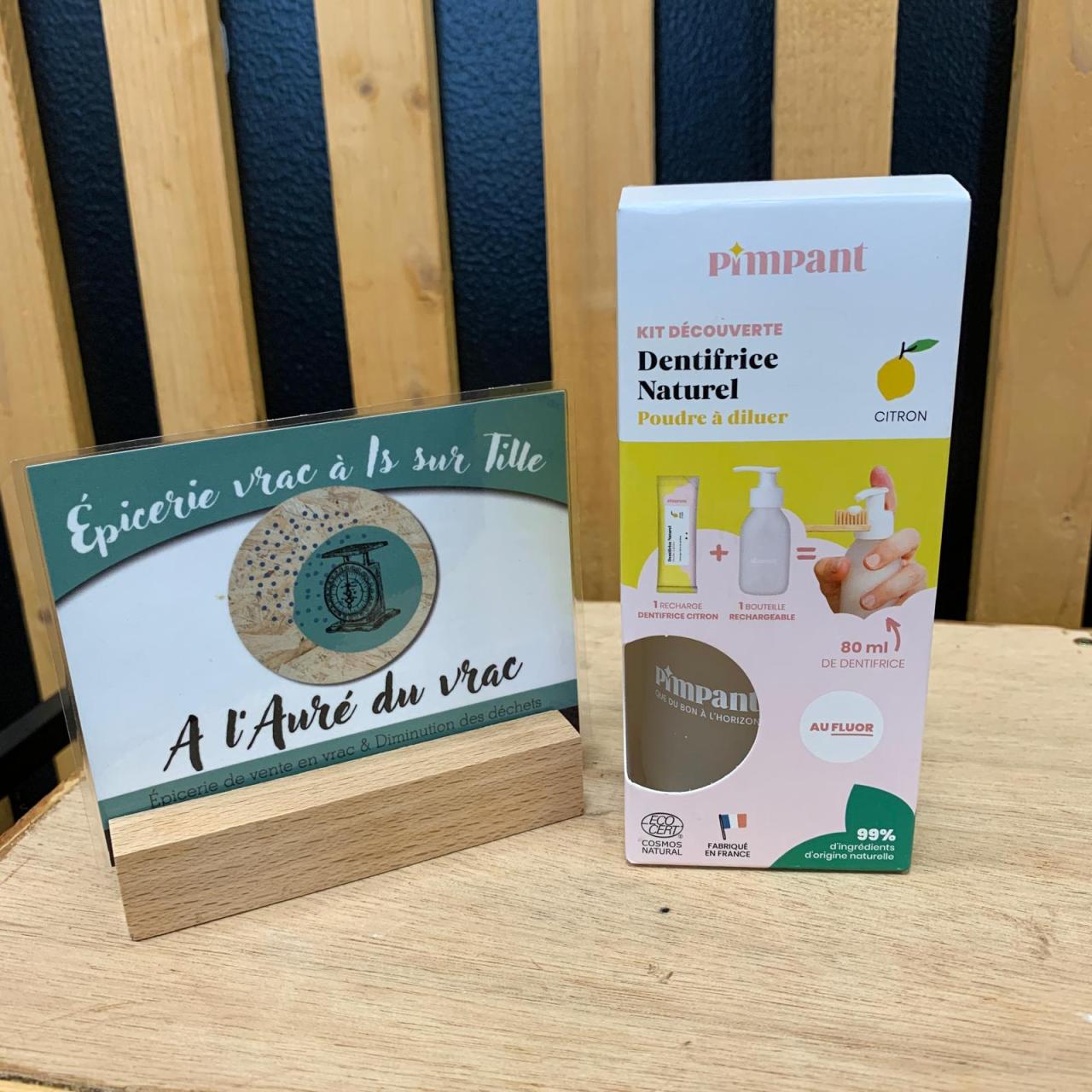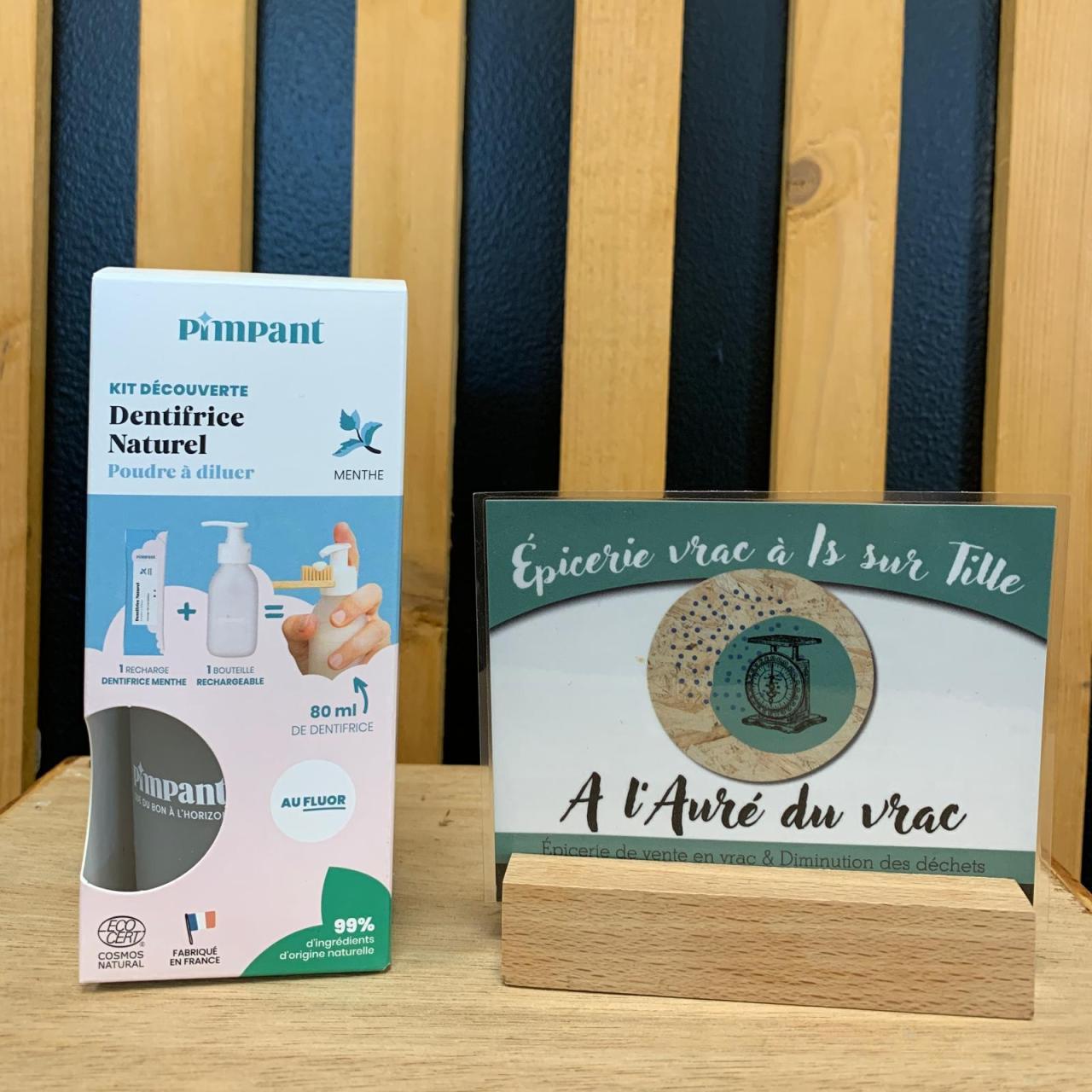 1 flacon-pompe en verre sécurisé et 1 écorecharge de 8 g de poudre (8 g de poudre + 72 mL d'eau = 1 dentifrice de 80 mL !)