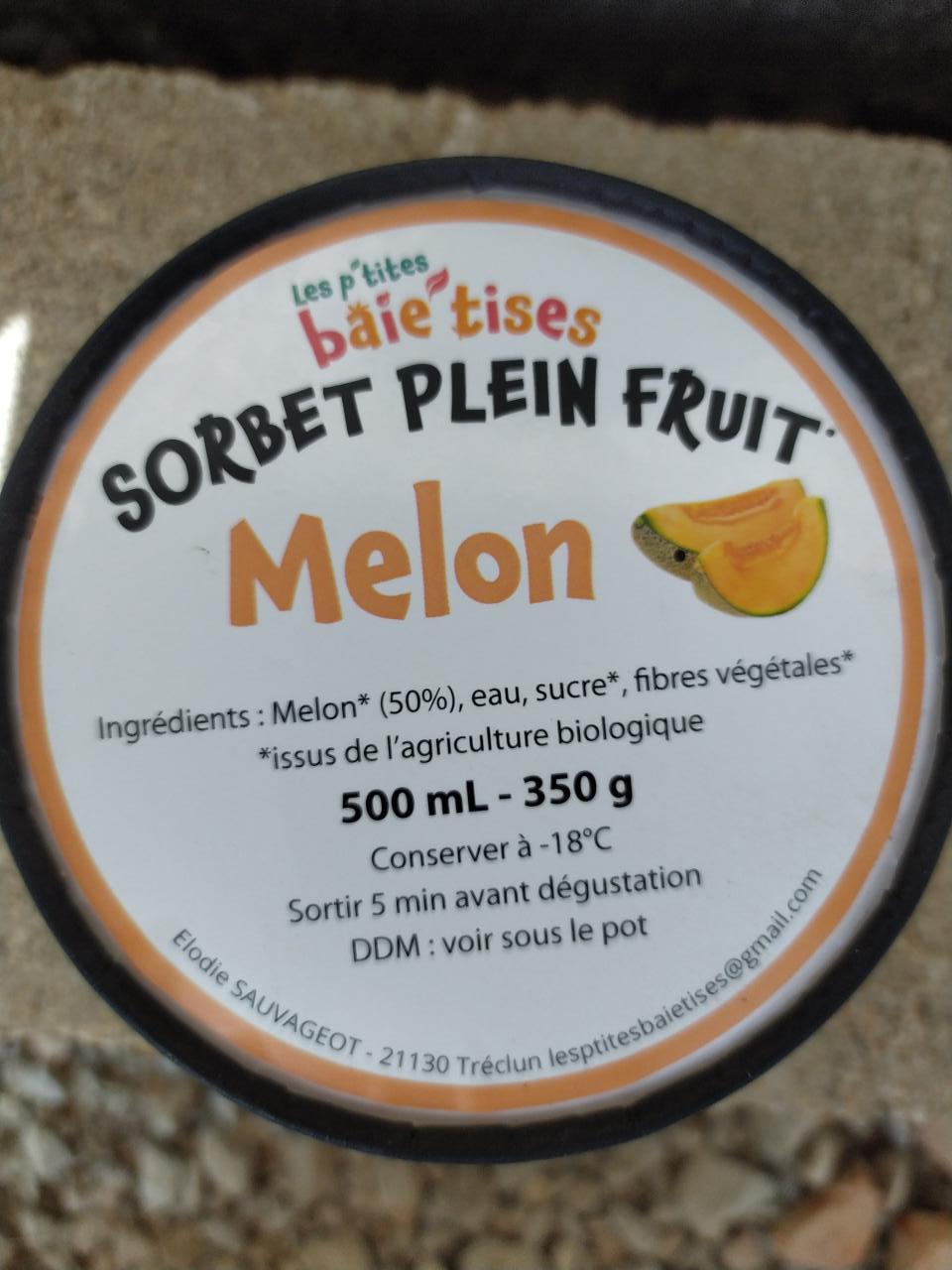 Sorbet plein fruit Melon élaboré à la ferme avec des fruits bio et locaux.