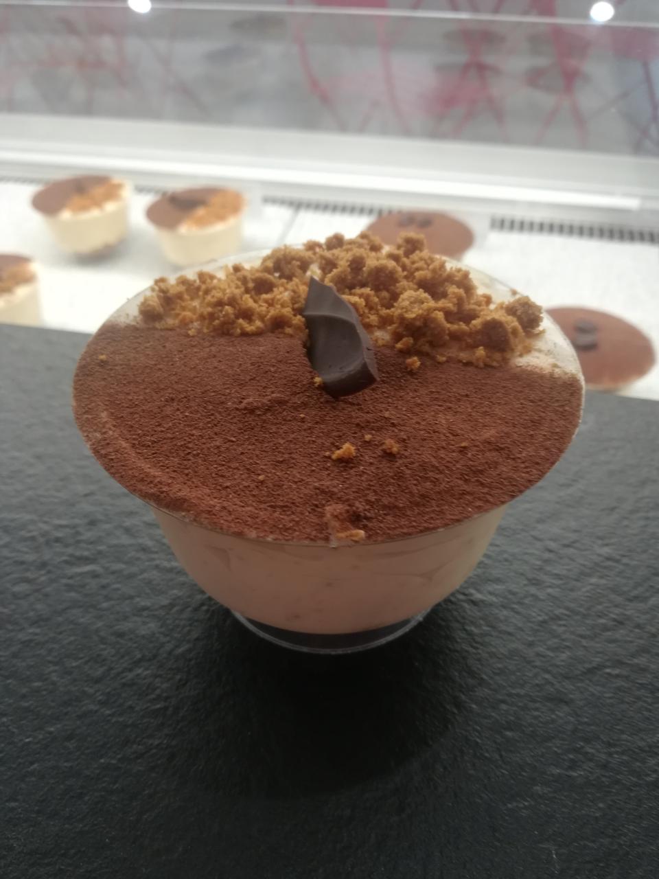 Allergènes : œufs, gluten, lait Conditionnement : Coupelle avec couvercle Durée de conservation : 3 jour à partir du jour de livraison Ingrédients : œufs, farine , farine de riz, sucre, mascarpone, crème, cacao spéculoos
