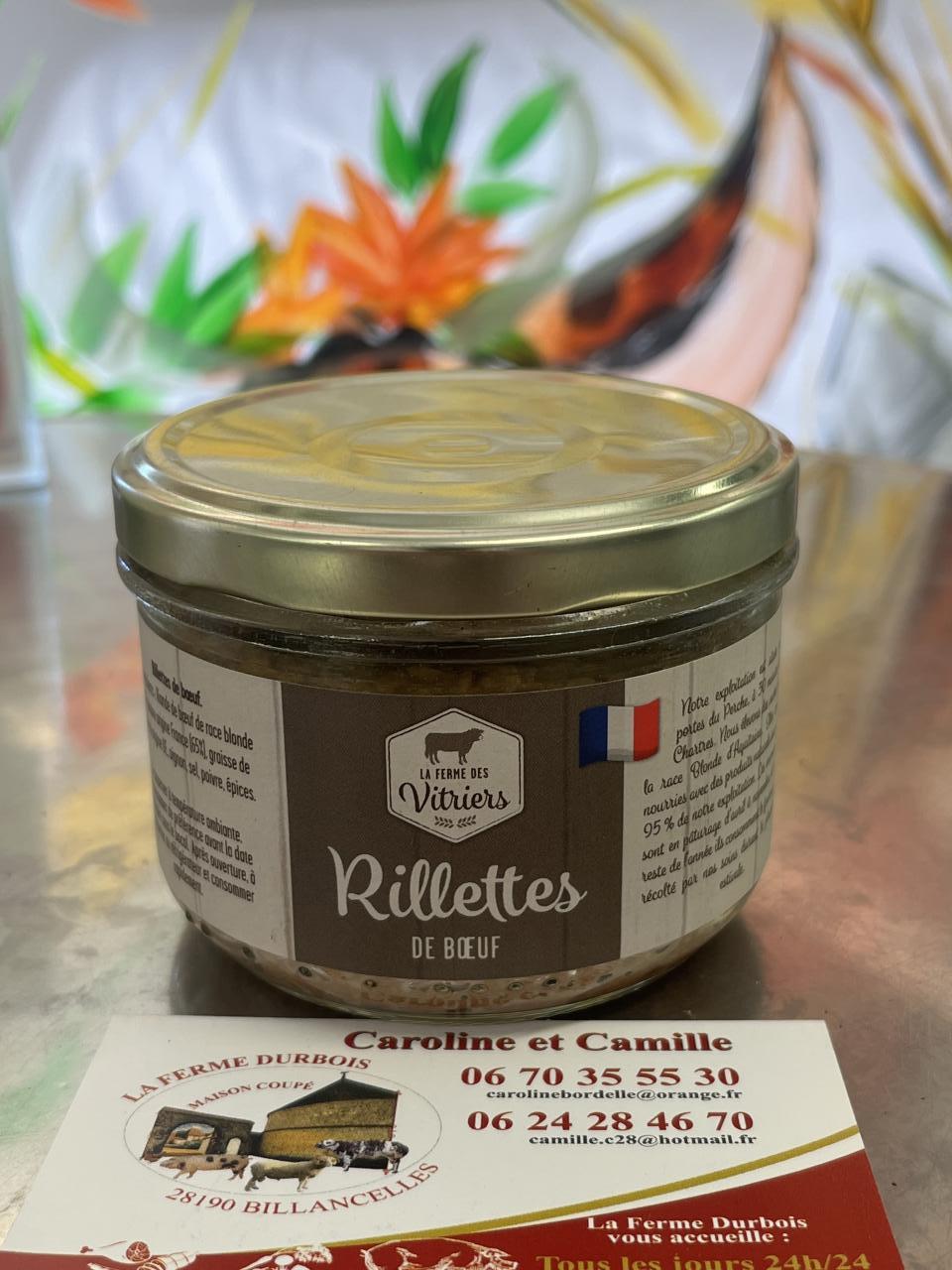 Rillettes de boeuf - EARL des Vitriers situé à Champrond en Gatine . Issu de leur élevage de bœufs sur place en plein air.