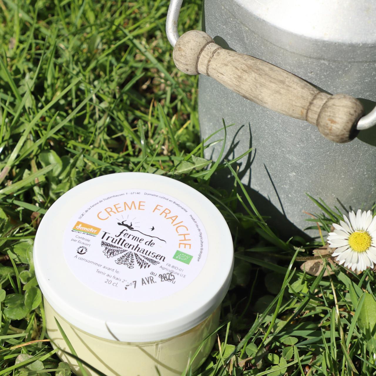 Délicieuse Crème fraîche au lait cru de vache Jersiaise ! Nous réutilisons nos pots alors pensez à les rapporter de temps en temps lors de vos distributions ;)