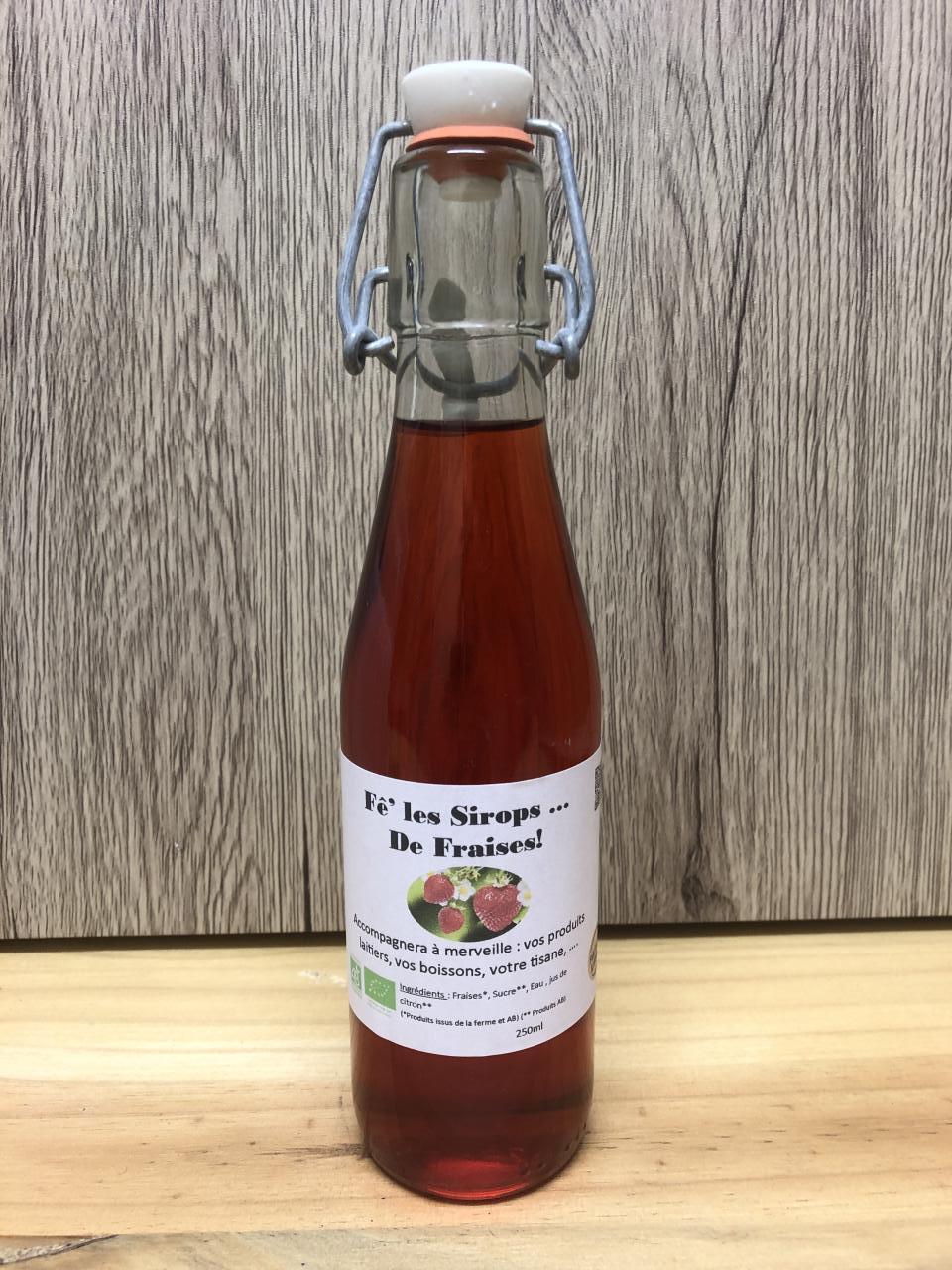 Sirop de Fraise réalisé avec les fruits ramassés sur la ferme.