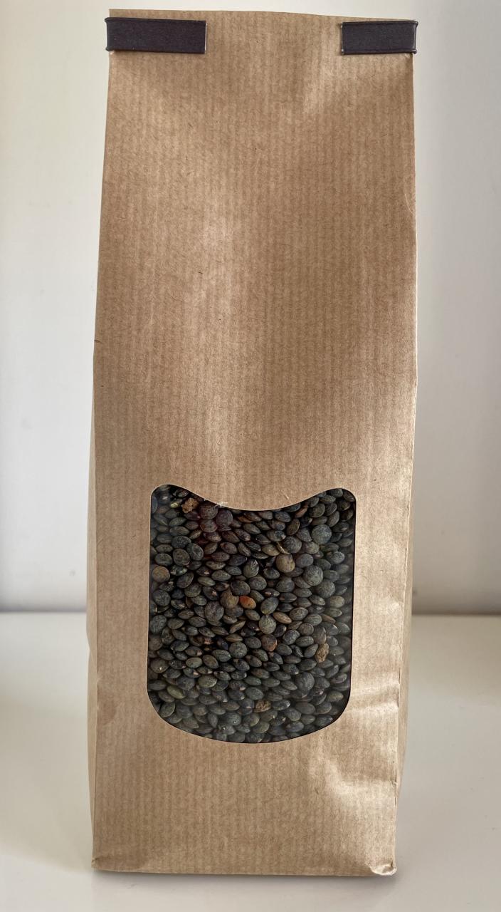 Conditionnement : sachet kraft avec fenêtre et barrette de fermeture Durée de conservation : 1 an Ingrédients : lentilles vertes Origine : ecoferme des milles et une feuilles - 77760 FROMONT - FRANCE