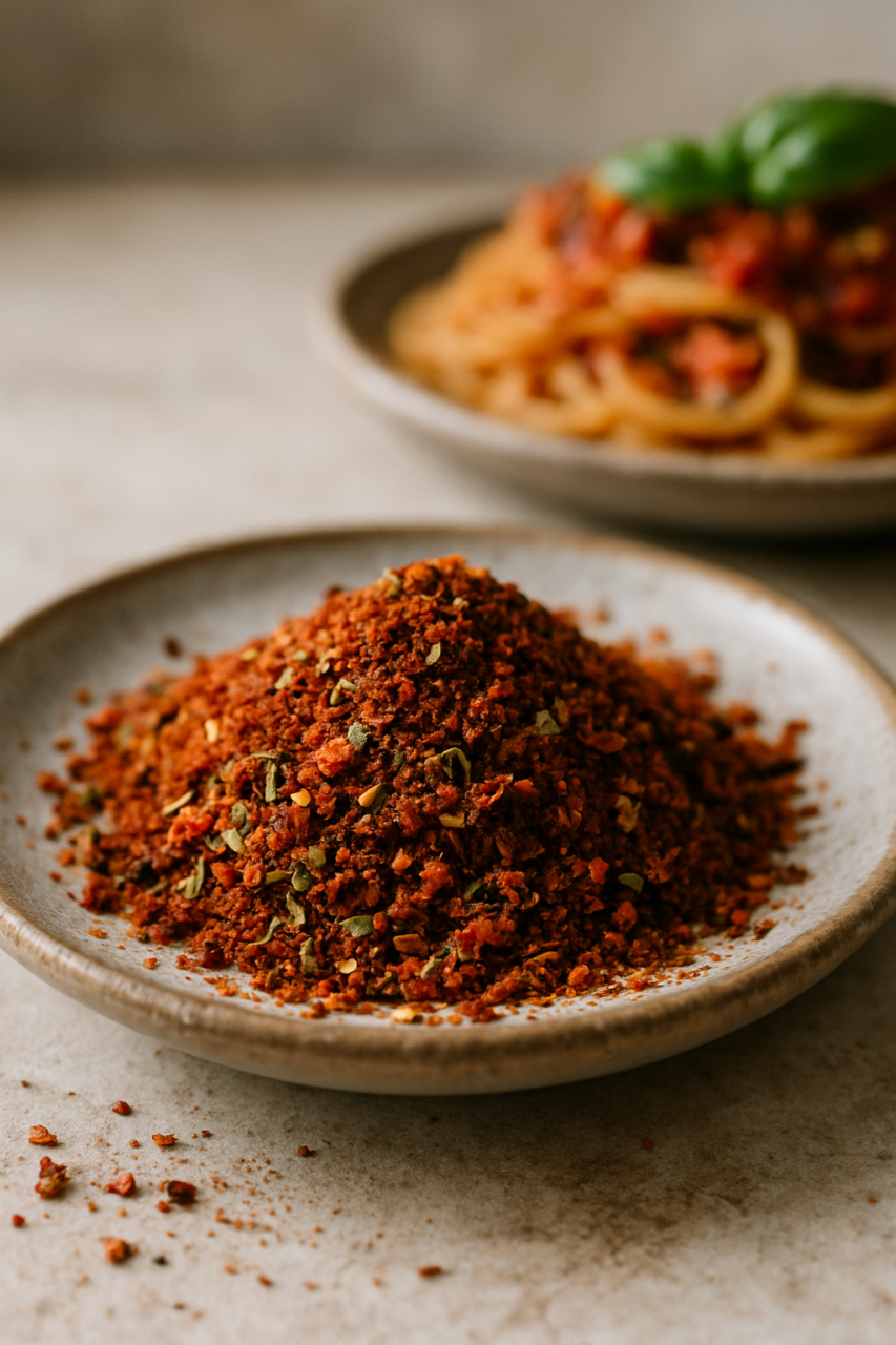 Découvrez l’Assemblage Napolitaine Intensa, un mélange d’épices aux accents italiens et fumés, parfait pour sublimer vos sauces tomates, pizzas, pâtes et légumes rôtis. Une explosion de saveurs méditerranéennes intenses. Disponible sur Les Épices Curieuses ! Composition : tomate en poudre*, origan*, basilic*, paprika fumé*, ail semoule*, coriandre moulue*, piment rechi *, poivre noir moulu*.
