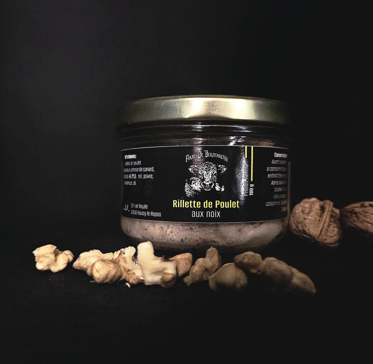 Nos rillettes sont élaborées à partir de la viande de nos poulets, associée à la richesse croquante de la noix.