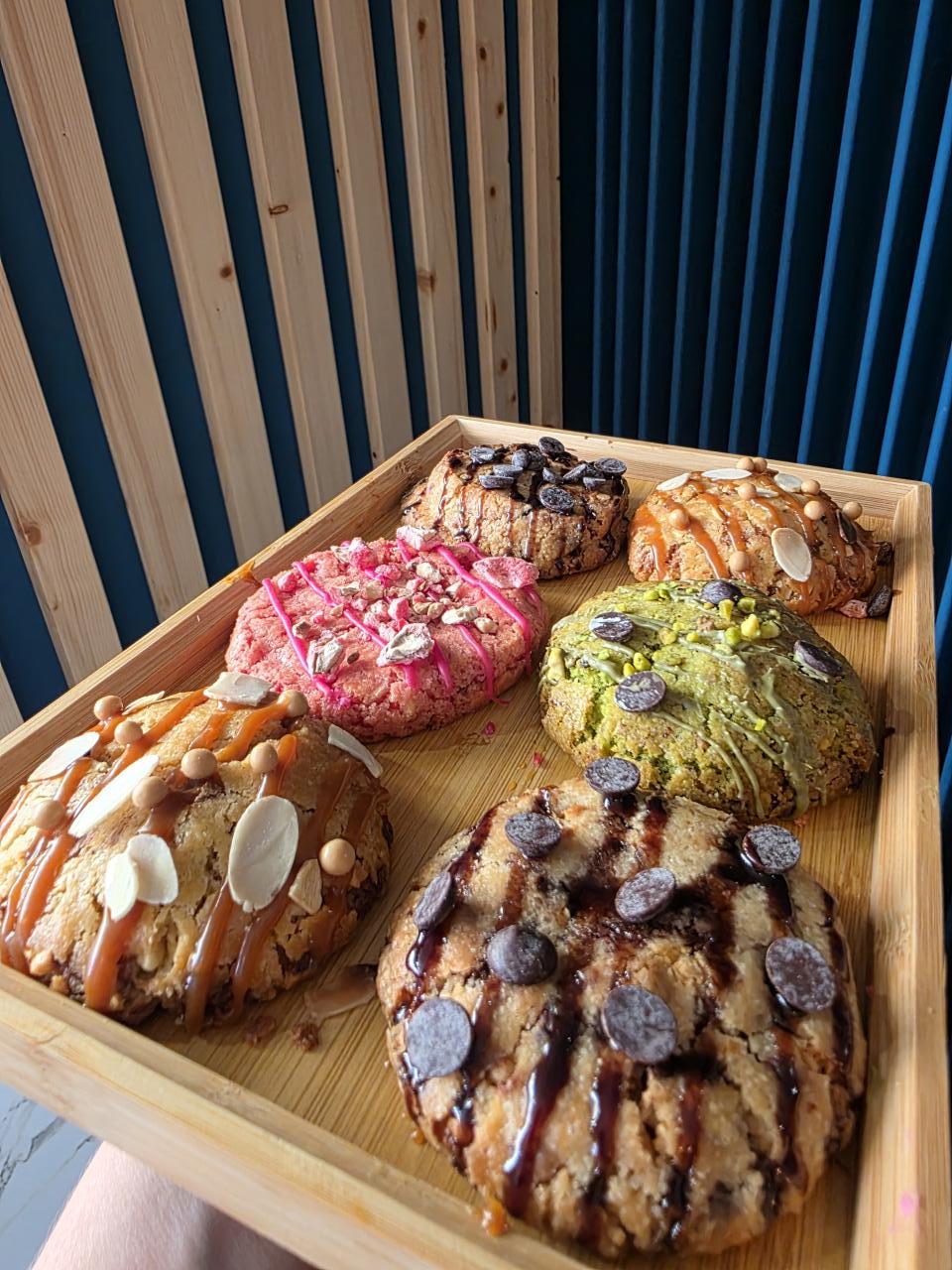 Cookie gourmand de 75/80g pralines roses et chocolat blanc ou pistache chocolat ou caramel amande ou tout chocolat