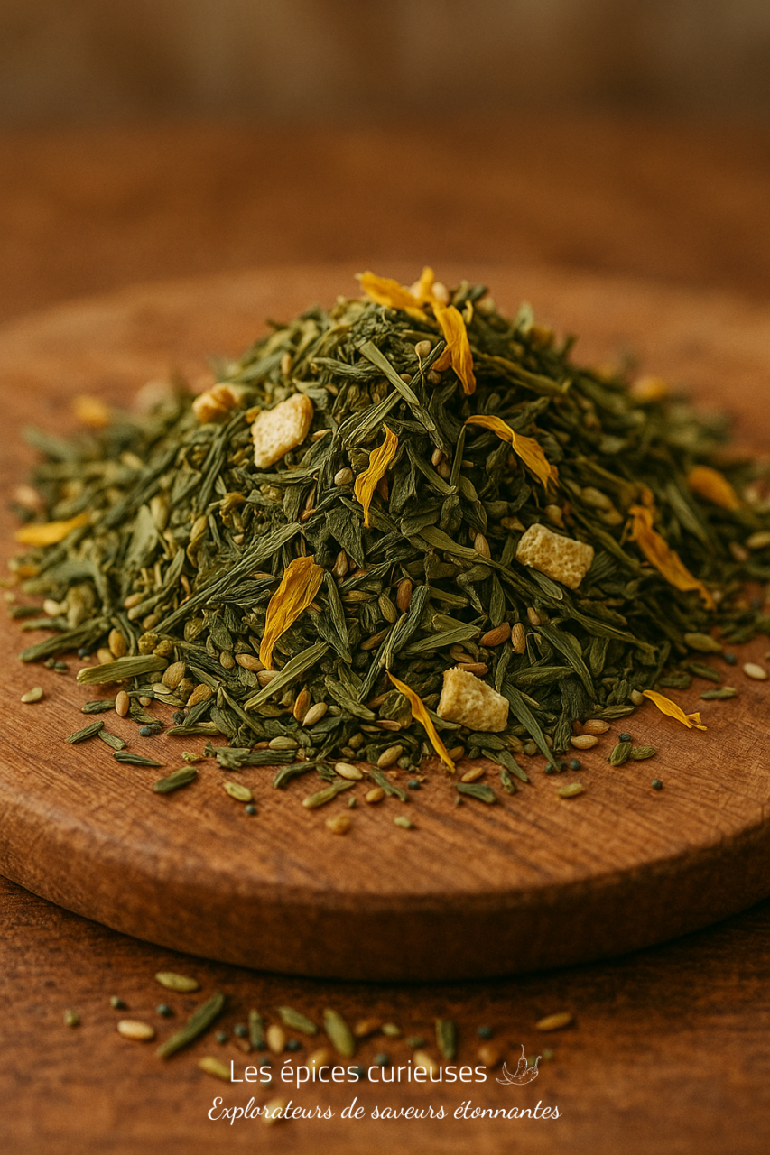 Profitez d'une expérience sensorielle unique avec Thé "Un p'tit coup d'frais" de Les Épices Curieuses. Un mélange raffiné de thé vert China Sencha, citronnelle et menthe qui ravira vos papilles. Il est subtilement aromatisé avec des écorces de citron et une huile essentielle de citron vert pour un goût frais et agréable.