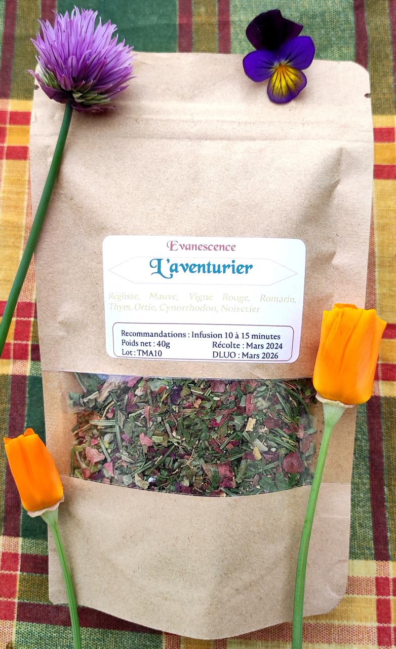 Ingrédients : Réglisse, Cynorrhodon, Ortie, Vigne rouge, Romarin, Noisetier, Thym et Mauve