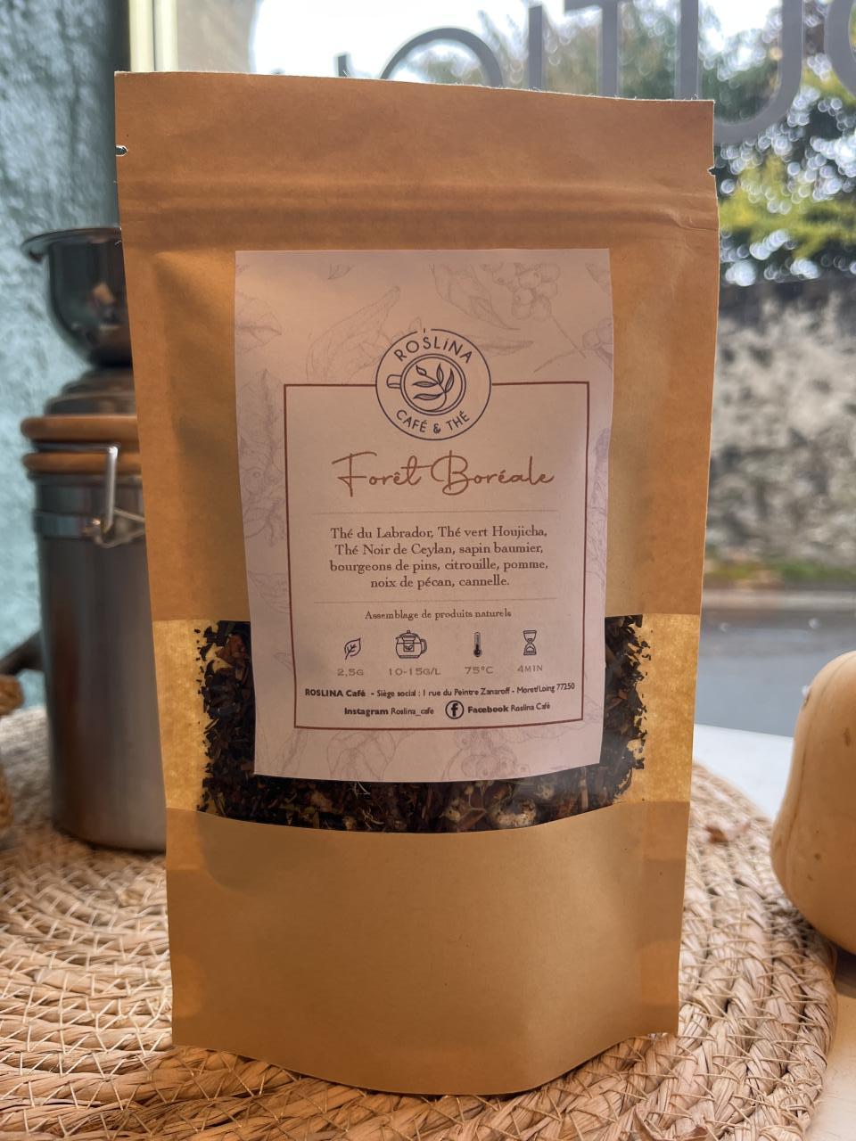 Mélange de thé du Labrador, de thé vert et de thé noir sur des notes résineuses , bien gourmande, de sirop d’érable, noix de Pécan