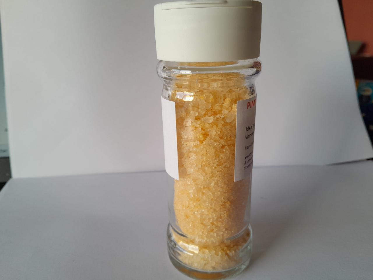 Ce sel gros pimenté allie la texture généreuse du sel brut et la puissance de piments cultivés sur notre exploitation. La pulpe pure de piment (sans graines) infuse chaque cristaux de sel d’une chaleur savoureuse et prononcée, offrant une explosion de goût à chaque pincée. Un vrai délice pour les amateurs de sensations fortes !