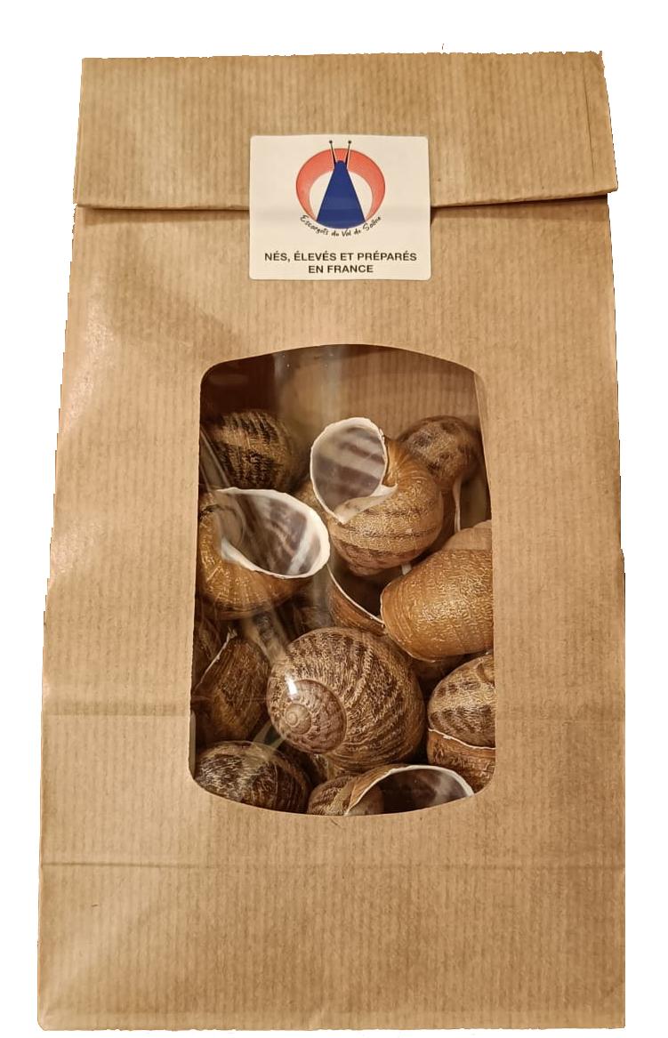 4 douzaines de coquilles d'escargots vides présentées dans un sac kraft. A accommoder selon vos envie, avec des escargots et un beurre persillé dont votre famille à le secret ou bien une farce végétarienne afin de combler tous vos convives.