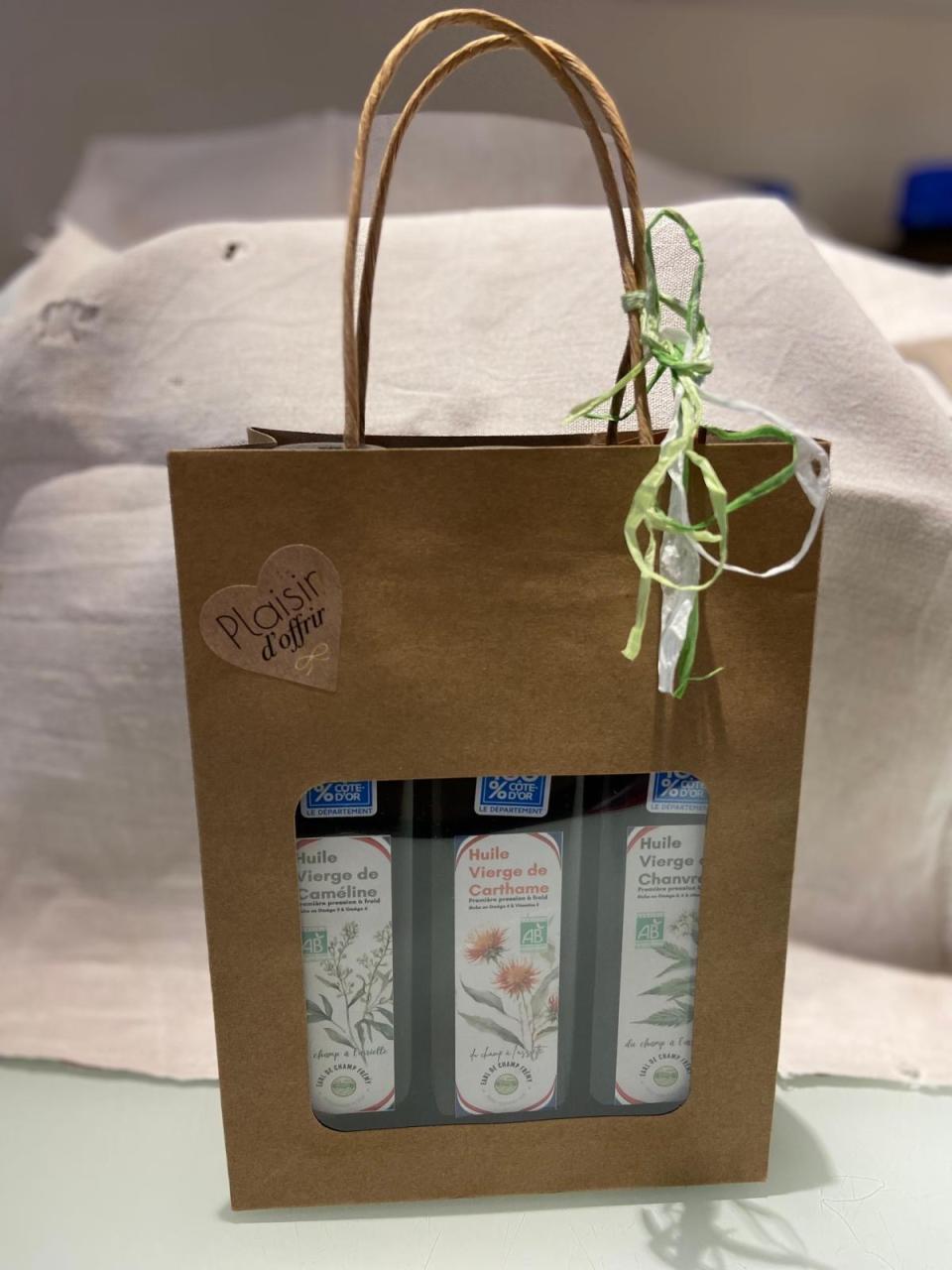 Coffret de 3 huiles bio en 250 ml : chanvre, cameline et carthame. Avec ces 3 huiles vous découvrez la variété gustative de chacune, ainsi qu’une variation des teneurs en oméga 3, 6 et 9. Un mélange subtile des huiles selon vos goûts peut ravir vos plats.