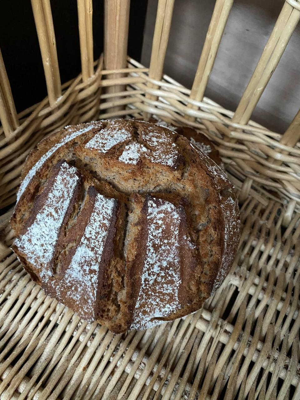 Pain apprécié pour son goût légèrement sucré grâce à la farine de châtaigne. La farine est cultivée en Ardèche. Il se mari très bien avec du fois gras.