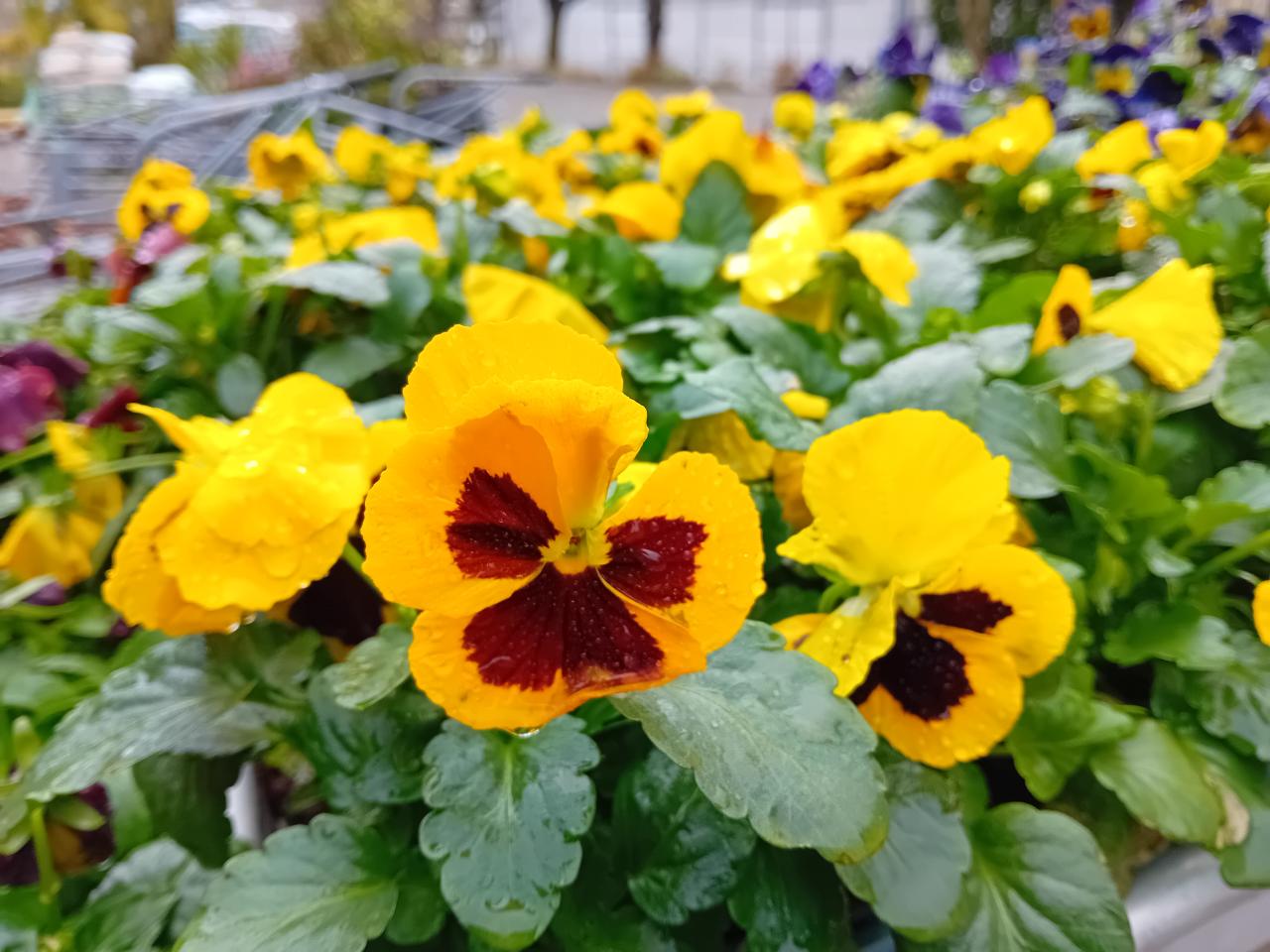 Pensée à grosses fleurs. Fleurs jaunes avec une macule noire