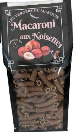 Macaroni aromatisés à la farine de noisettes 20% et blé dur, cuisson 5minutes.