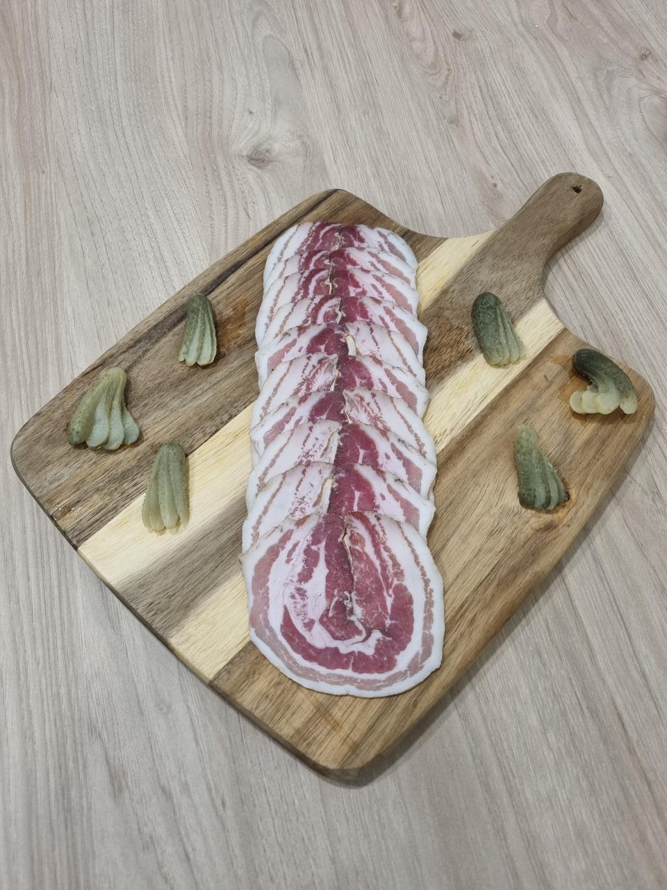 La Maison du Cochon vous propose de la charcuterie sous forme de pancetta tranchée.