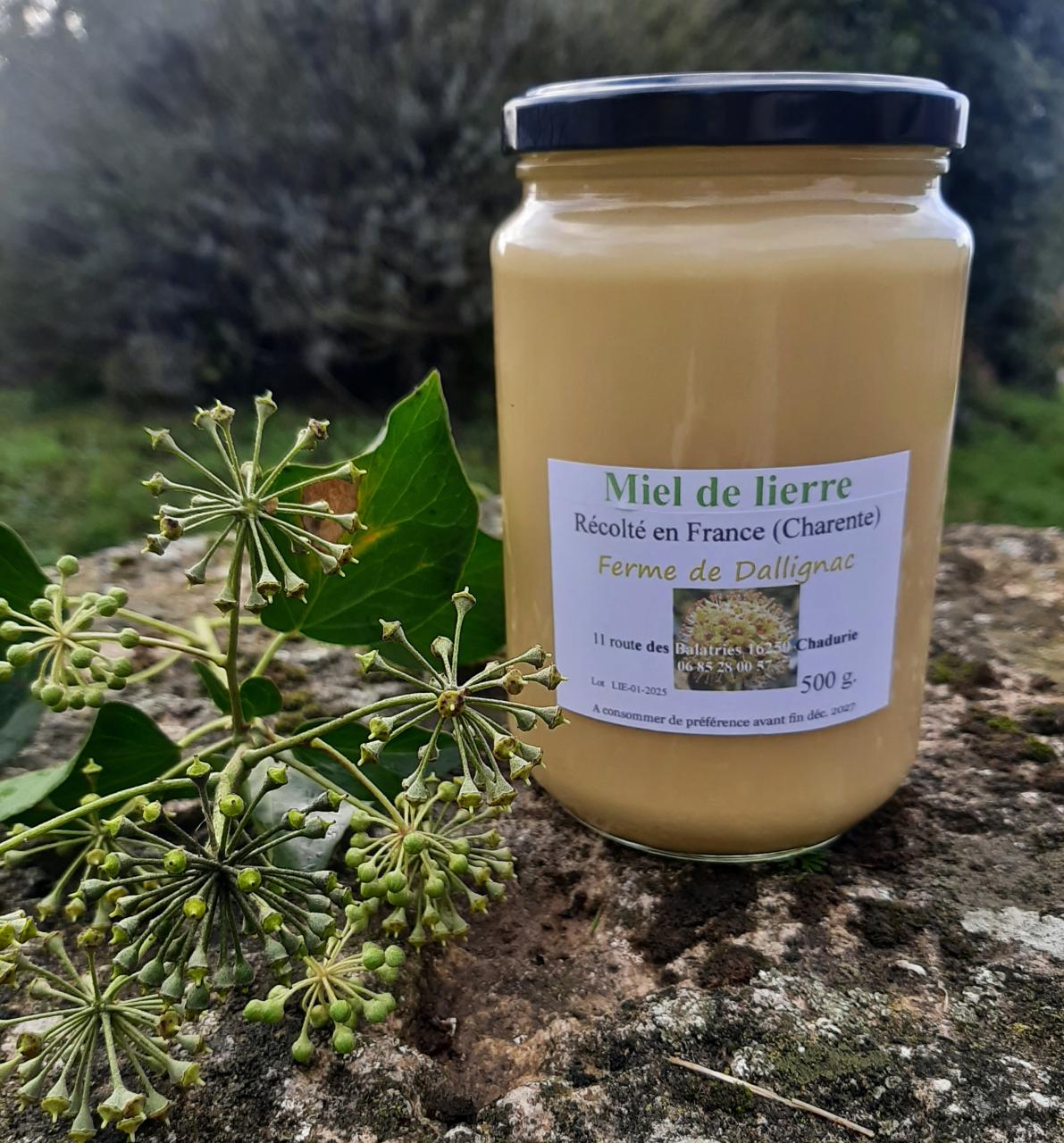 Conditionnement : bocal en verre Durée de conservation : 2 ans Ingrédients : miel de lierre Colorants ou arômes : sans Origine : France (Charente)
