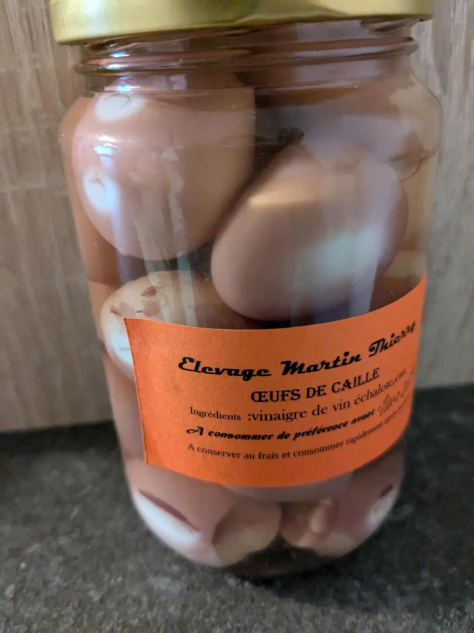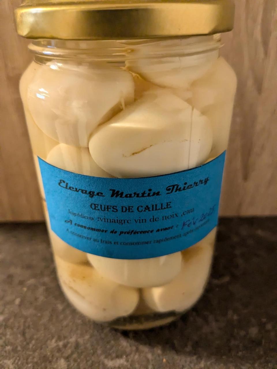 Oeufs de caille écalés 18 à 20 oeufs (suivant la grosseur) dans le bocal :