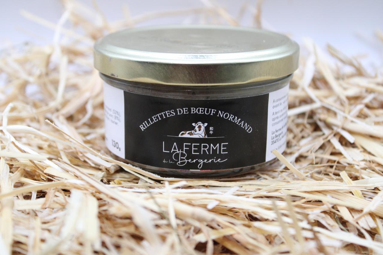 Rillettes composées de viande de bœuf normand né et élevé à la ferme. Recette élaborée par nos soins et réalisée par un prestataire employant des personnes en travail adapté. La viande de bœuf est composée de différents morceaux afin d'avoir la texture typique des rillettes.