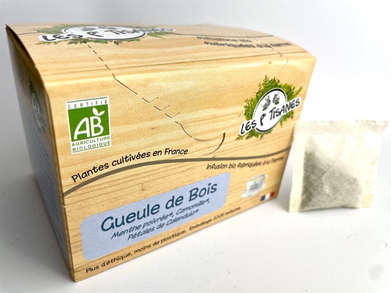 Qui ne s'est jamais réveillé avec le vague souvenir d'une soirée où les verres n'ont cessé de parader autour de la table? Un oeil s'ouvre, puis l'autre, tout va bien... L'inévitable gueule de bois apparait quand la décision de se lever a été prise. On se frotte les yeux, les cheveux mais rien n'y fait, le mal de tête est bien là. Un grand bol de tisane "Gueule de bois" vous ouvrira les portes d'une journée meilleure.